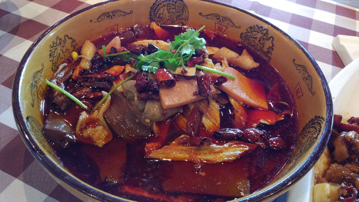 ...平时不吃辣的,都忍不住吃了好多,肥肠,黄喉,血豆腐,鳝鱼段,料非常足,这个辣,还真是可以接受的