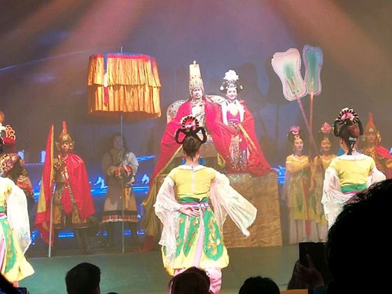 跟团去的时候,团队旅行安排的表演。从九寨沟出来走大概几百米就能到,里面座位很多,平时一般不会坐满,所以如果你拿到了座位不太好的票,到临开场的时候再换到中间的前排也可以的。 里面主要提供藏族和羌族的少数民族表演。有唱歌跳舞服装展示和互动环节。观看起来还挺热闹的。觉得能够值回票价。还有一个很厉害的人吹唢呐,能一口气吹很长时间,佩服。