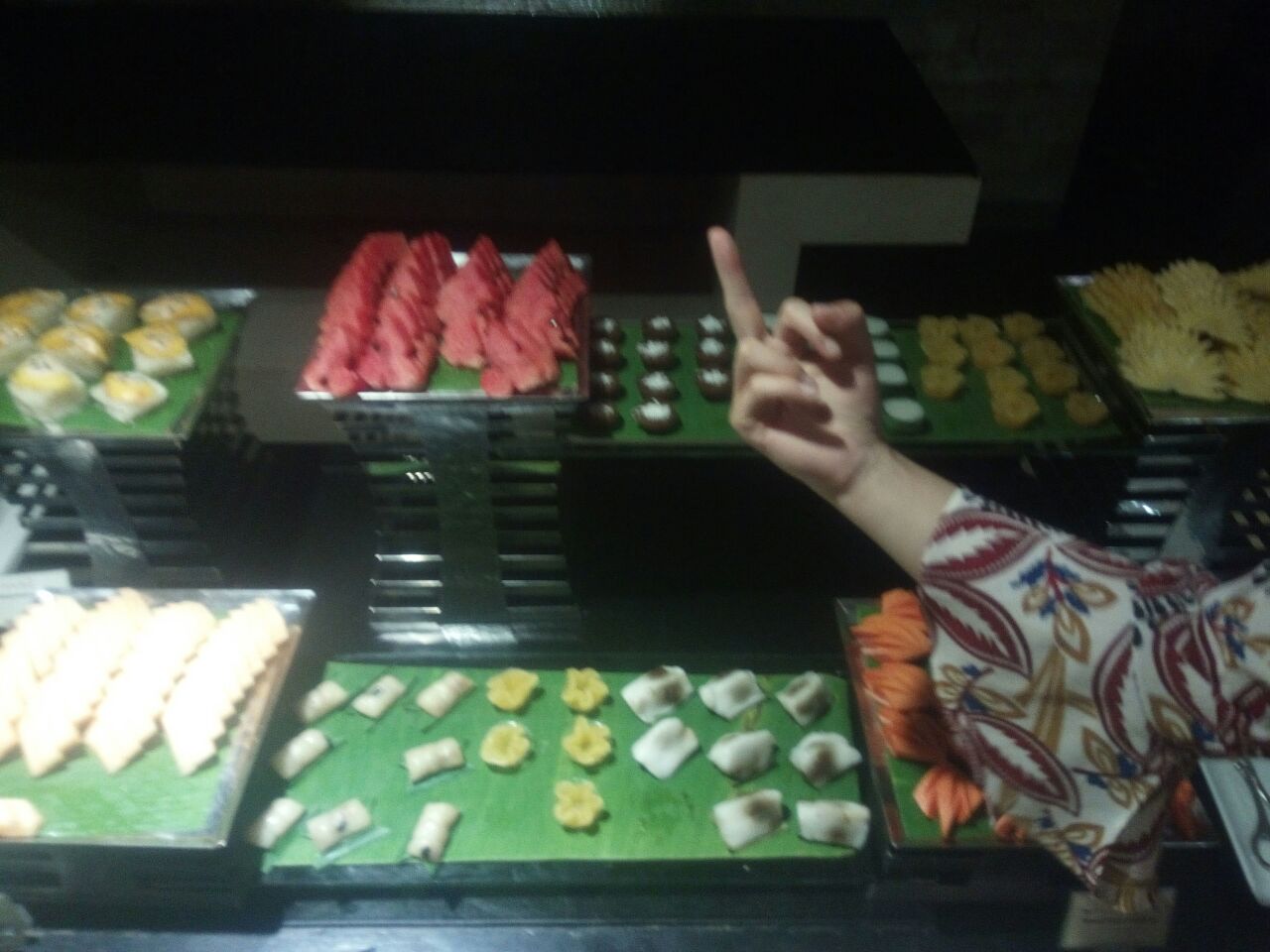 也不知道是不是改菜系了,这自助总共三种海鲜,大虾,鱿鱼圈,青口贝,仅此三种,而且味道非常不好吃,其他的吃的每一样都赶不上夜市的任何一种小吃,而且种类非常少,酒水单点,一瓶矿泉水12人民币,苹果汁30,水果种类非常少,但是菠萝很好吃,其他的每一样我都尝了全都吃不下去,但是,不得不说环境满分,服务满分,如果是奔着环境去的绝对不错,如果是去吃饭的,三思,而且我们去的价格是790泰铢一个人,一百六人民币