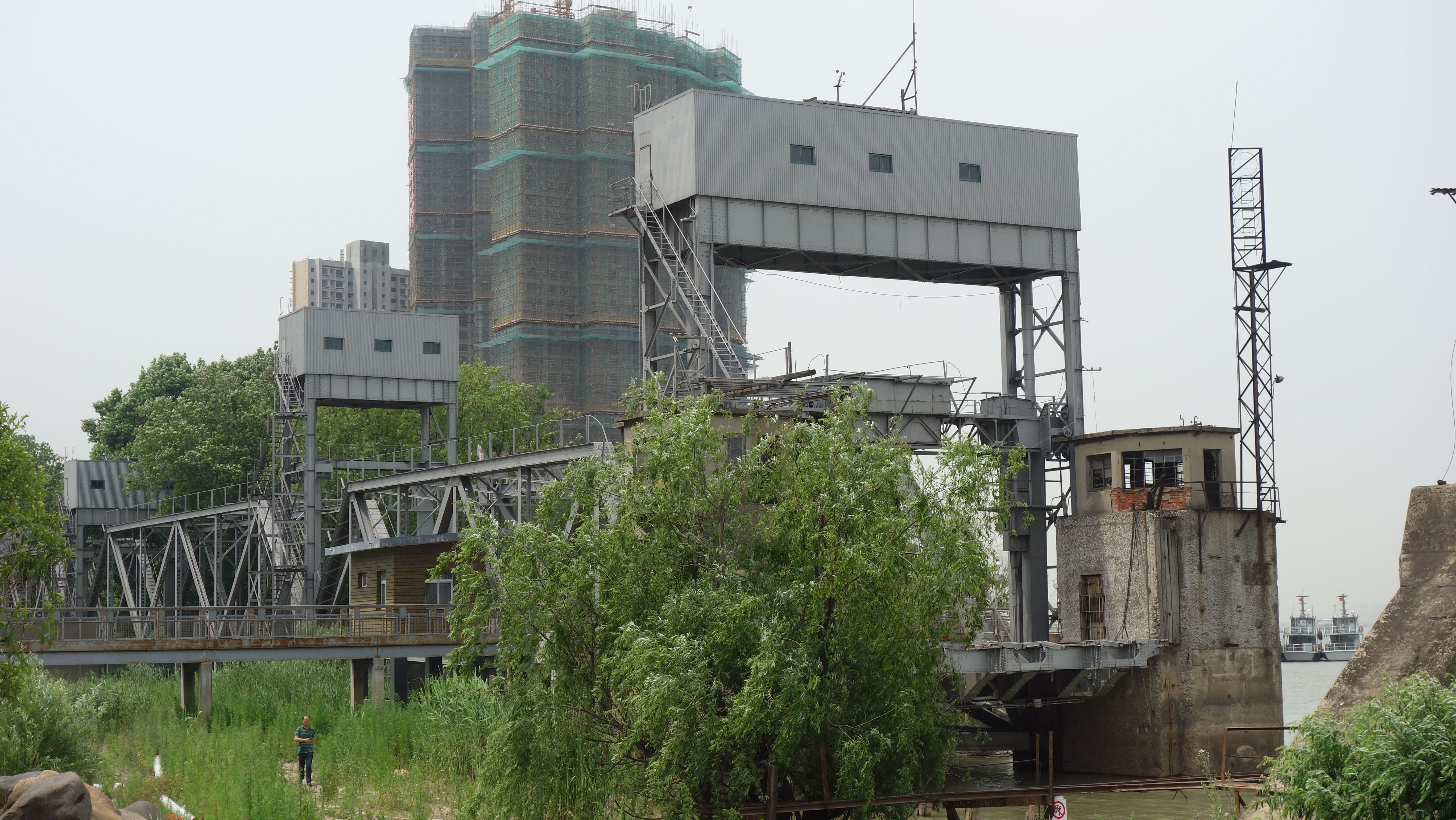 轮渡栈桥旧址在老江口,一侧是南京西站的客场。另一侧现在修建了一个火车主题公园。在这里可以望见不远处的长江大桥。一侧的沿江修建了滨江风光道,一路沿着长江,伴着这些历史的脚印慢慢回顾,有自然风光也有人文风景。在没有长江大桥的时候,这里可是重要的交通枢纽,妈妈当年去北京就要通过这座栈桥呢。