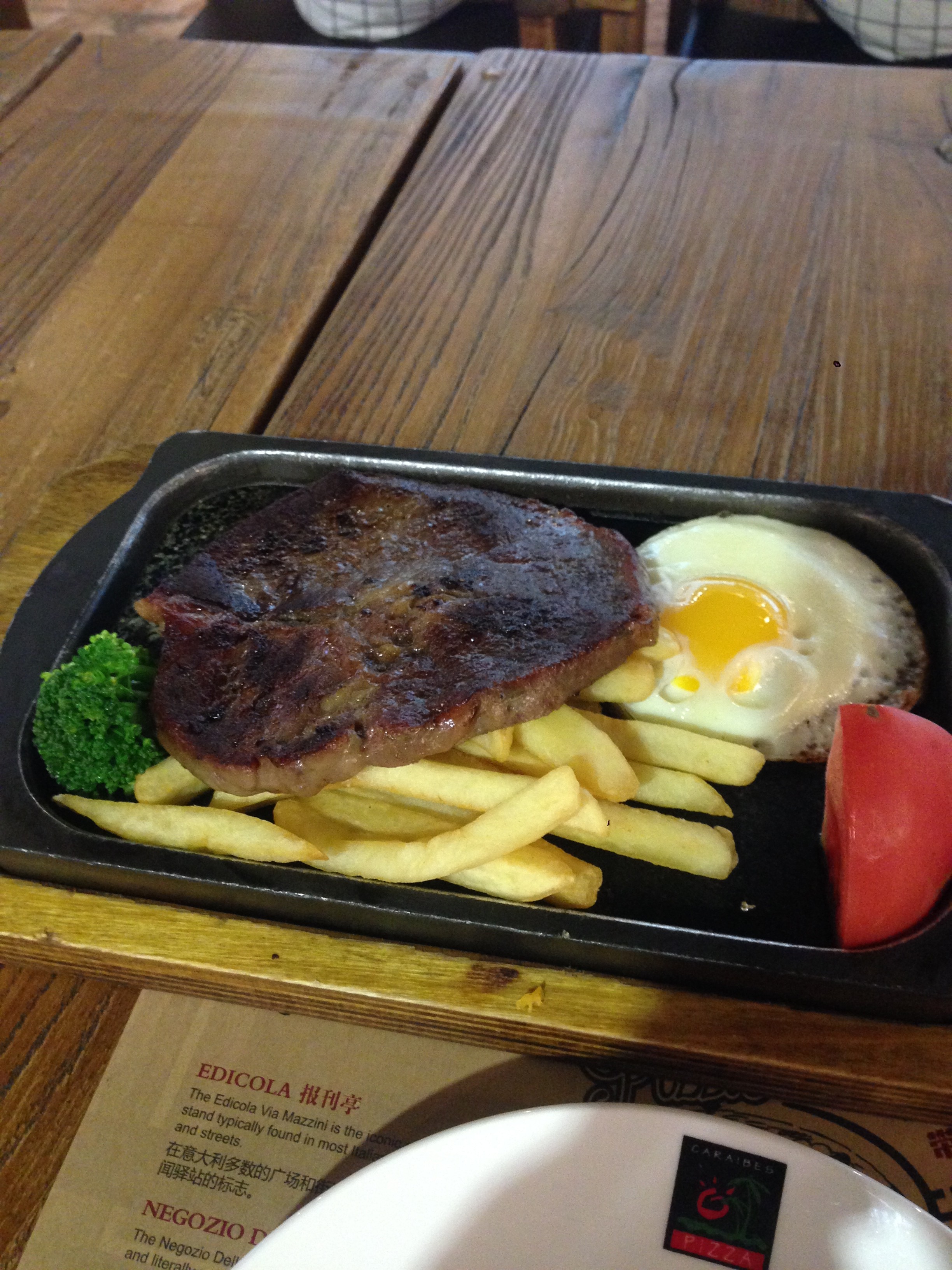 鲅鱼圈加乐比西餐厅主打意大利式西餐风味,坐落在万隆广场的4楼,后来在万达广场又开了一家,我还是很习惯去万隆那家,因为停车很方便。这家店就餐高峰期需要排队,小孩子们都很喜欢,价位不便宜,一般来说都是办个会员卡,打点折,偶尔还有个优惠活动什么的,我比较喜欢那个沙朗牛排,一个人的份,有牛排、薯条、煎蛋、西红柿等配菜,再就是点个披萨,榴莲味道那个,切成6份,够3个人的口粮了,,人均消费40元左右。