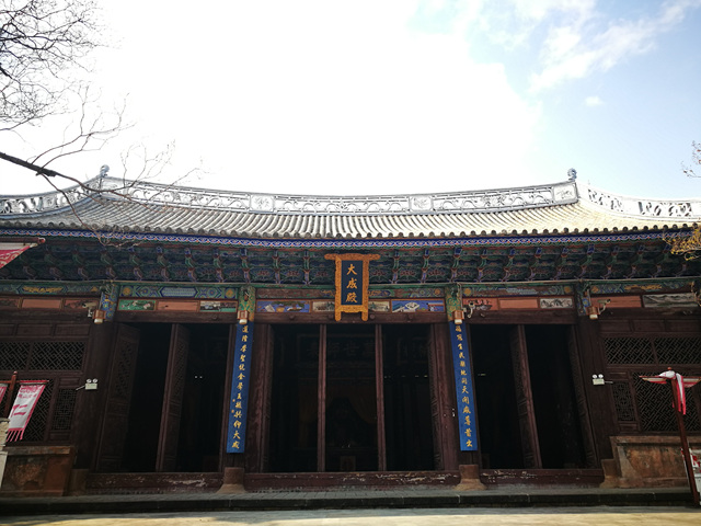 蒙阳公园走到底,一墙之隔就是文庙,始建于明代洪武年间(1368年—1398年)。万历四十七年(1619年)庙毁,随即重建。 原来是卖门票的,售票处的公告还在,不过现在已不卖票了,免费参观。里面的建筑古色古香,没什么游客,随意逛逛还不错。