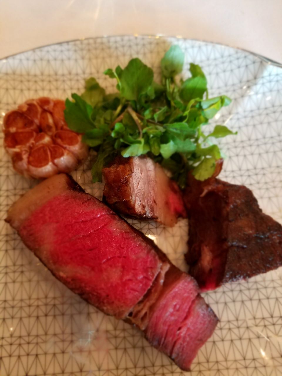 被请到这么高大上的地方吃牛排,真是钱有点多啊。环境很不错,厚重的门,欧洲风格的装饰,但我不喜欢。服务员彬彬有礼,把我们带到餐桌前。厨师在我们旁边切牛肉,现场表演。桌上各种调料,弄得我晕。牛排吃起来怎么沒火锅好吃呢,可能我不饿。花了多少钱我不知道