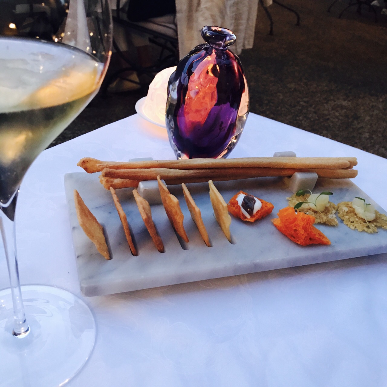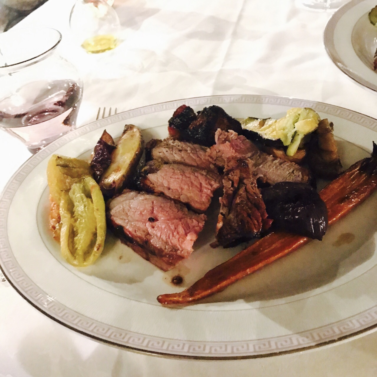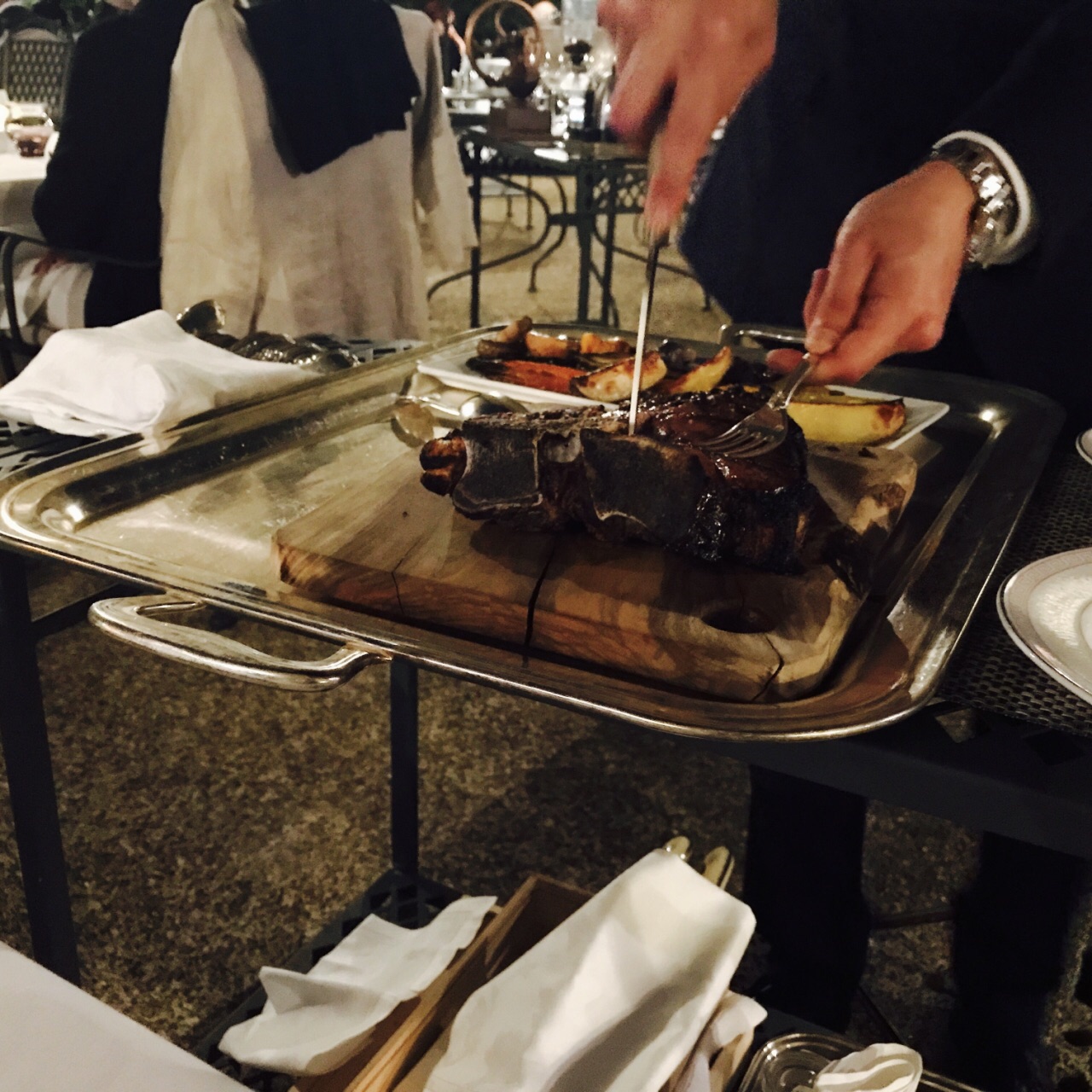 四季酒店的米其林一星餐厅,在主大堂的后面,花园的入口。对于本身就注重服务的四季,这家餐厅可以说是做到了极致。从进门到领位到点菜,服务人员非常热情。当我们提起想要品尝佛罗伦萨大牛排的时候,尽管没有在菜单上,服务生还是帮忙和主厨确认,并为我们做了这道不在菜单上的主菜。餐前的香槟也很可口,配上推荐的龙虾沙拉,在吃肉之前清清口。还有值得特别说一说的是这里的自制橄榄油,非常香而且健康,配餐前面包或者龙虾沙拉。真正当大牛排上来的时候,我们确实有点儿被惊呆了,因为实在是太大了,服务生在旁边帮我们展示,并现场切割,满满两大盘牛肉,服务生还很贴心地为我们准备了清蒸蔬菜来解腻。在佛罗伦萨的初夏的夜晚,没有比这更惬意的了。