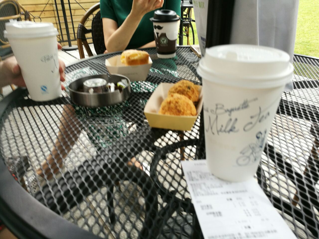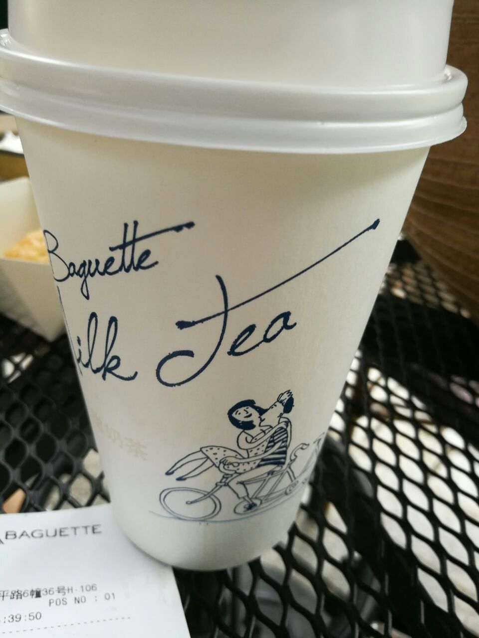 因为等人,就在靠近瑞平路的“巴黎贝甜”露天座位上坐了一会儿,买了两杯奶茶,一杯拿铁,服务不错,能送到座位上,就是门口大大广告星期二用支付宝八折没有兑现,同伴喜欢这家奶茶,说味道平和,不会象有的店中奶茶甜得发腻。友情提醒一下,门外的桌子及时清洁一下,尤其不要忘记堆满烟蒂的烟灰缸。