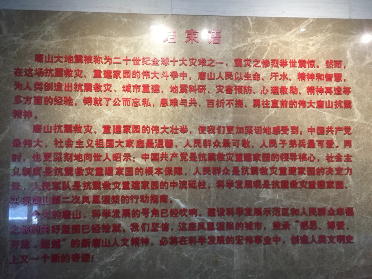 虽然遗址不大,但是也能感受到当时地震对唐山的损伤;感受到了人们那种团结!一方有难、八方支援的精神状态虽然遗址不大,但是也能感受到当时地震对唐山的损伤;对唐山这座城市造成的严重伤害,看到周边环境就觉得唐山震后回复成现在这样简直是一种奇迹!感受到了人们那种团结!一方有难、八方支援的精神状态!