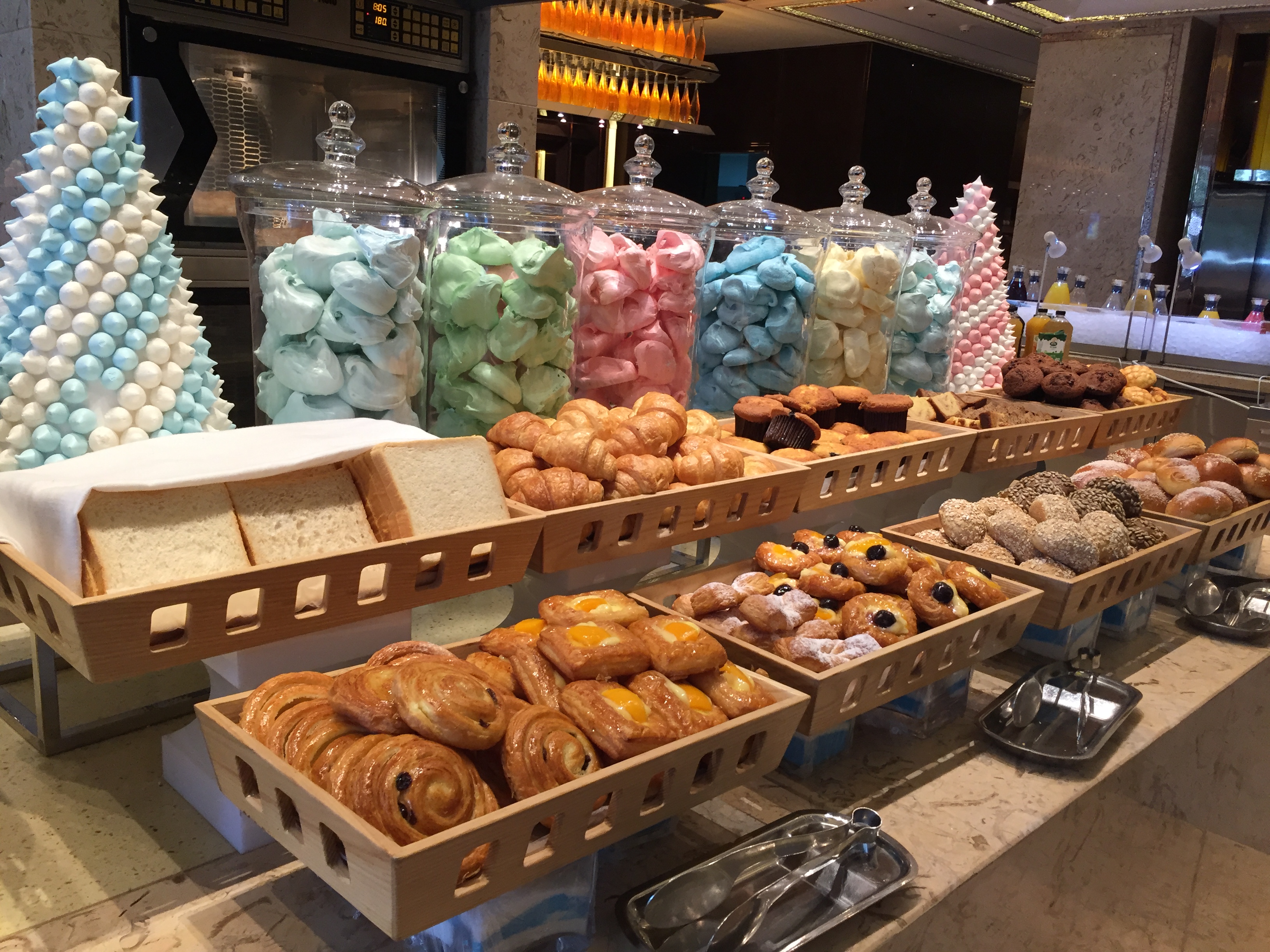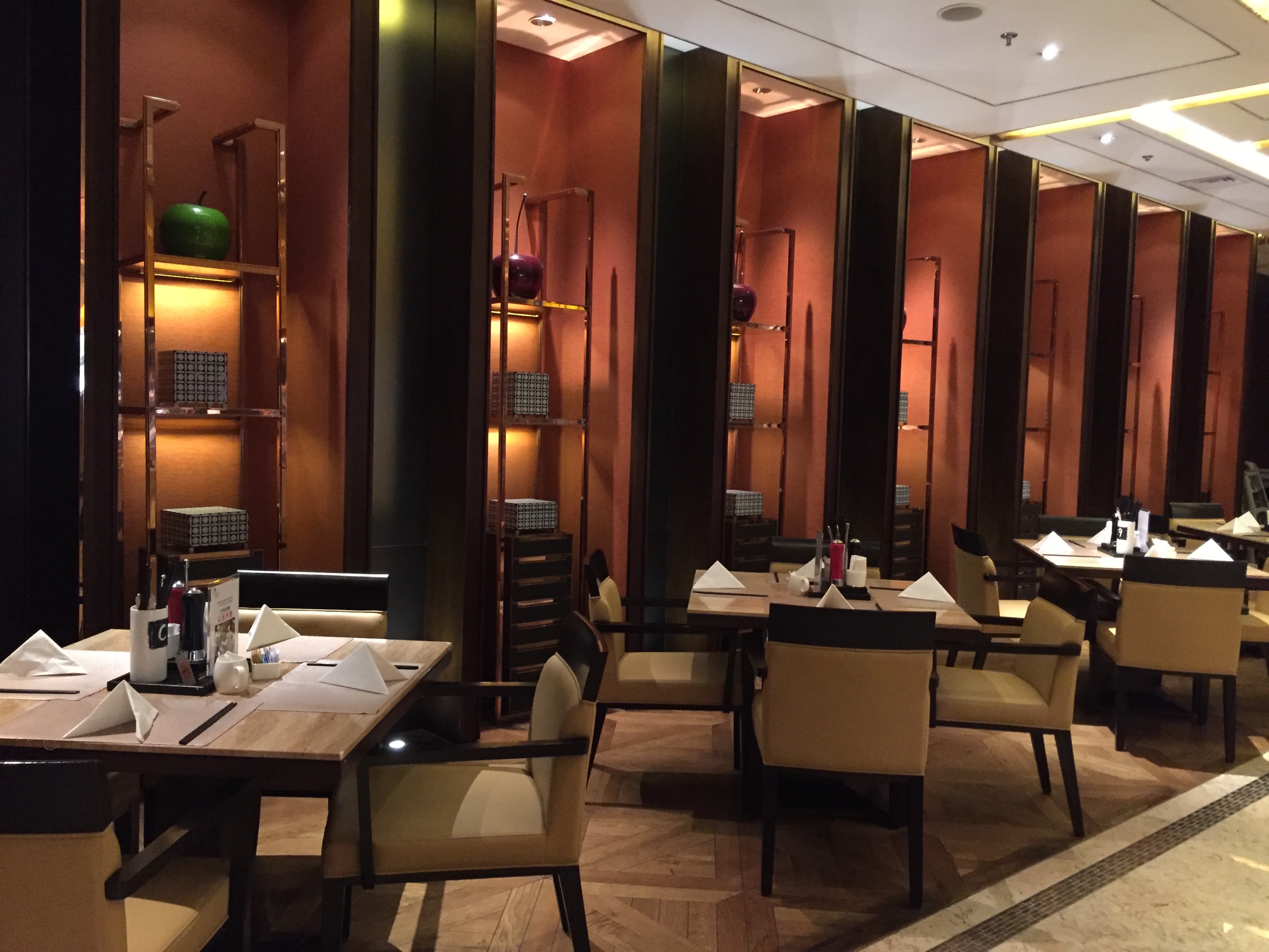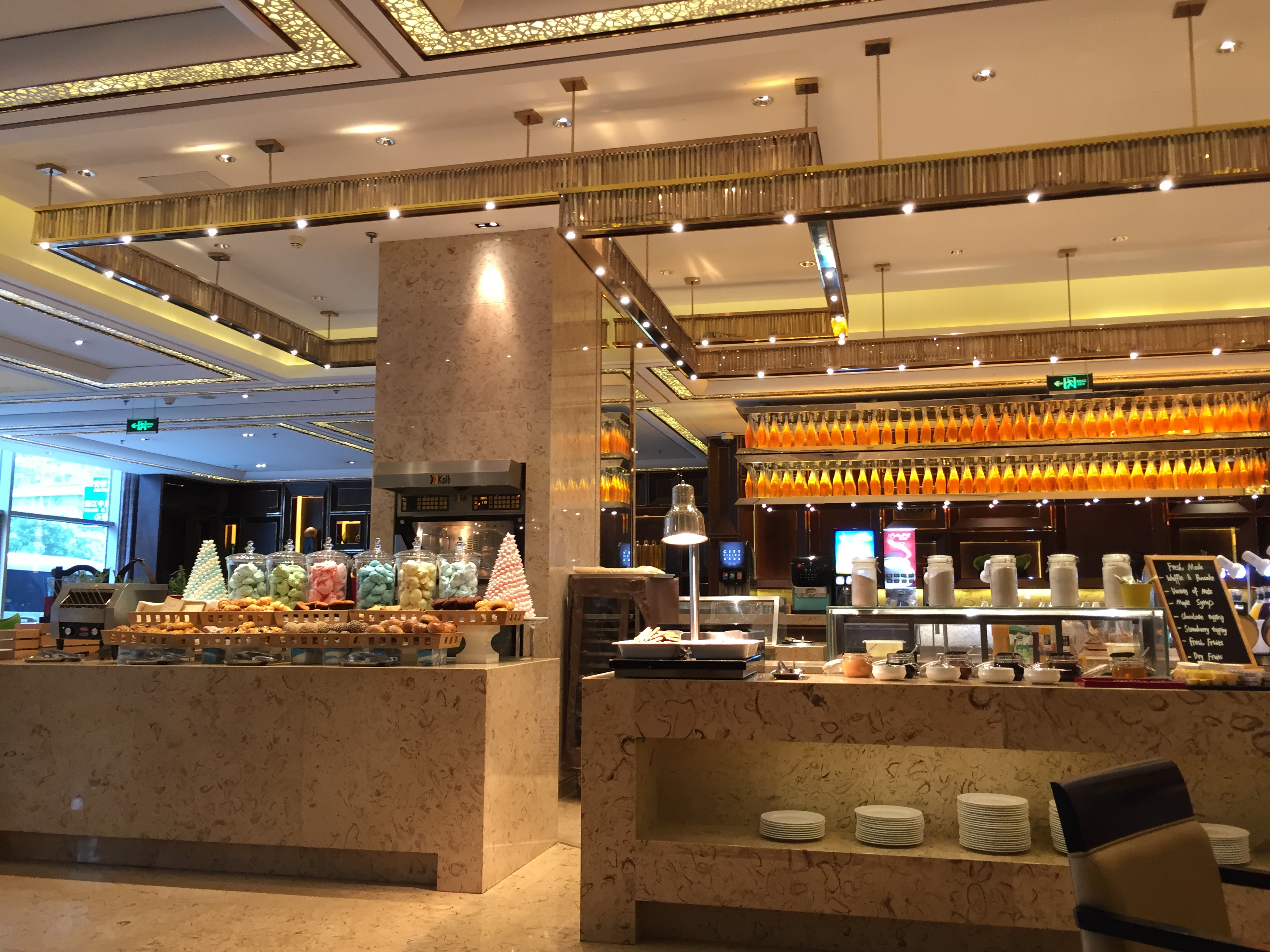 入住酒店早餐是在酒店一楼的都会尚膳自助餐厅享用的 节假日里客人也不多 门口的三个小小哈哈镜非常可爱 吸引了不少小朋友们 环境很不错 装修风格大气 座位格局也不错 宽敞舒适 品种是万豪酒店标准的配置 中西餐 现煮都有 感觉比较算得上特色的是现煮的银丝面 料理阿姨很热心的推荐 量不多可以尝试 搭配面的配料可以自己添加