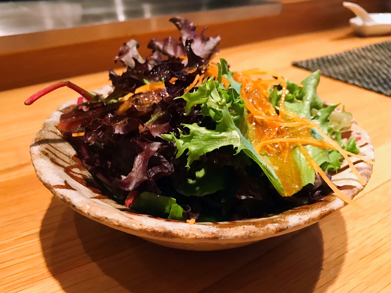 Fat Cow以从日本、澳洲进口的A4、A5级别的和牛闻名,但是我最喜欢的一道菜竟然是图9的秘制苹果汁蔬菜沙拉。这绝对是因为我付不起每100克要卖100-200新币的高昂价格吧[捂脸]午间套餐30-50新币,包括主菜、蔬菜沙拉、味增汤、蒸蛋和饭后甜品冰激凌球,性价比一般。图6的澳牛盖饭搭配温泉蛋和松露油,我们要的五分熟,但吃到嘴里的牛肉是过老、过干、过熟了,侍应生说他们一般都是做三分熟的…为什么不在点单的时候告诉我们呢[捂脸]