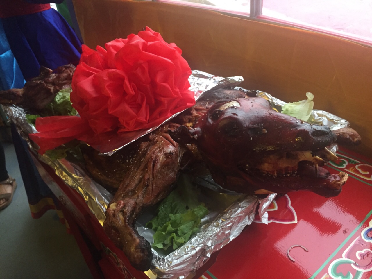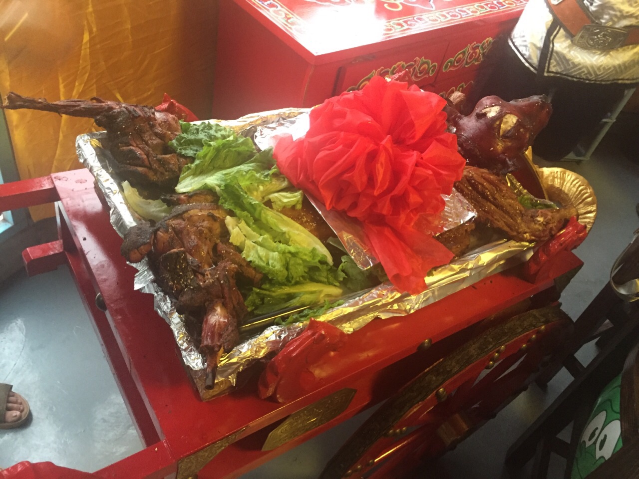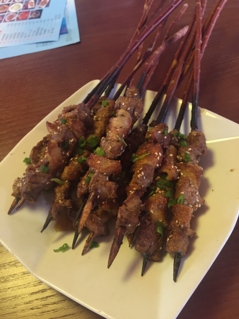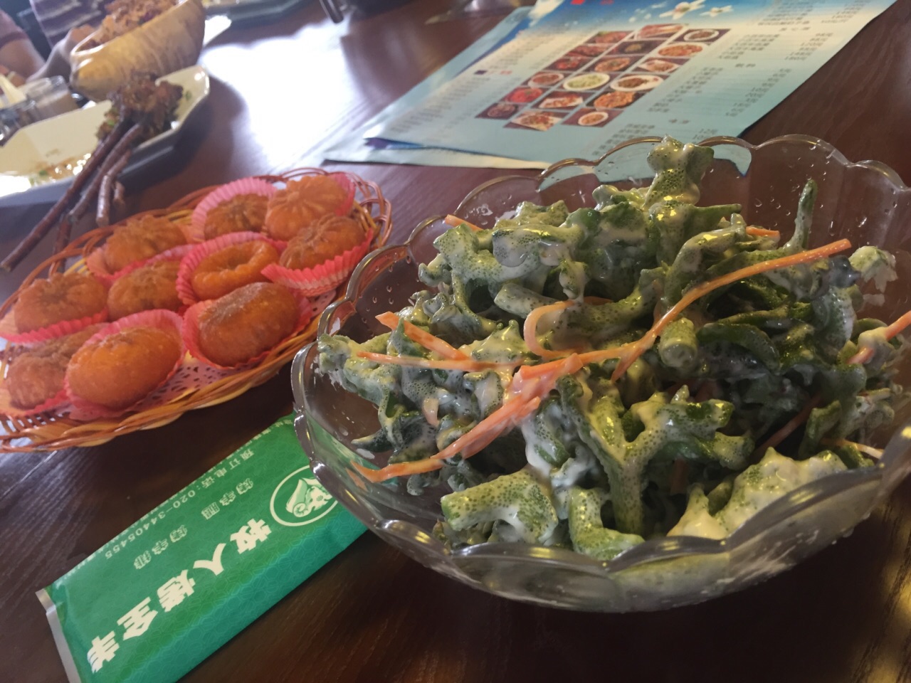 店铺的地址在东圃珠村力子园路,旁边有个幼儿园,跟着百度地图其实也是很好找。 店挺大的。看起来像个农庄一般。 外面有蒙古包一样的包房。 里面也有散座。 菜品很多。 烤全羊有二十多斤,好赞。把推车的腿儿都压断了。 吃羊之前会有特别的祈福仪式。 然后有服务员一点一点切割下来,端上桌供大家享用。 烤全羊面相和我想的不太一样。 有点像恐龙。啊哈~看起来头好大。 羊杂碎汤味道不错,咸淡适中,口感刚好。 羊肉串大爱。所用的签子很特别,像是某种树枝削减了的样纸。 羊肉包子 和羊肉饺子,相比之下更喜欢饺子多一些。可能因为吃起来肉比较多? 香芋地瓜丸和南瓜饼香酥可口。 蚕蛹我是第一次尝试。吃起来酥酥软软的,和想象的不太一样。高蛋白吗,哈哈哈。 一口茄造型别致,煎制入味儿,确实一口一个,但是也不会油腻。 黄瓜蕉酱,很适合肉吃多了以后清爽解腻。 凉拌皮蛋是日常最爱,也吃了不少。 蒙古奶茶有甜咸两种,更喜欢咸的,更为浓郁。 蒙古来的哈斯和内敛大汉为我们唱歌助兴,氛围很棒。 马奶酒喝了不少,我都有点晕。属于那种回味是奶味儿的感觉。 总而言之,老板和服务员都很热情,服务业很到位。有机会会和朋友再去。