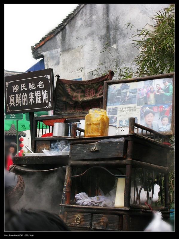 位置很好找,就在人最多的那个桥上。小摊特别传统,没有什么很花哨的装饰,开水冲烫,用的是最传统的小馄饨做法。馅料很鲜,小馄饨虽然一碗不算太多,但味道很好,加一点配的紫菜虾米一起吃,非常香。路过就来上一碗,只是大部分时候没有地方做,站在桥边吃也是常事。