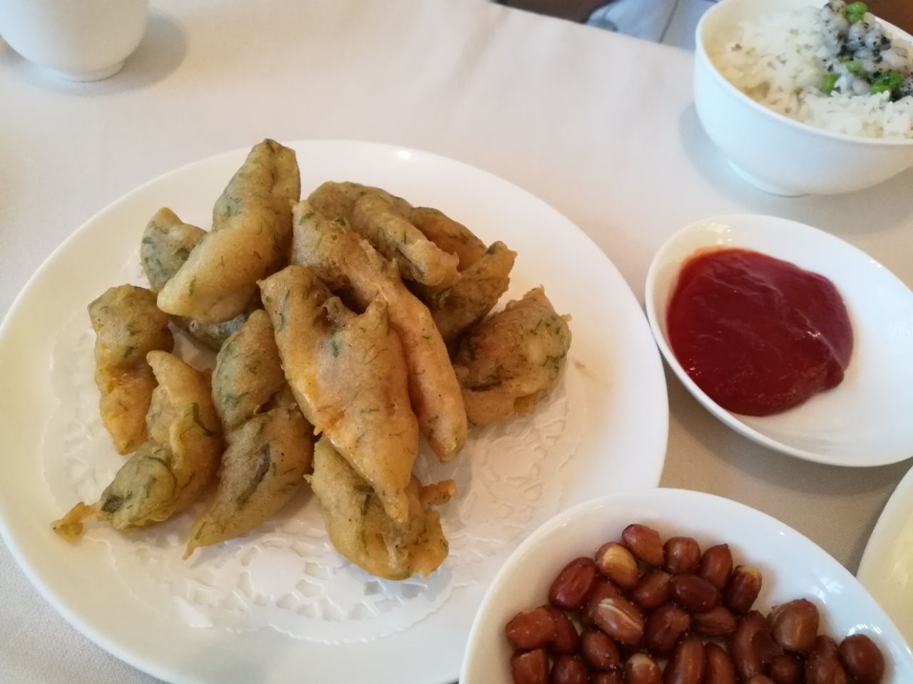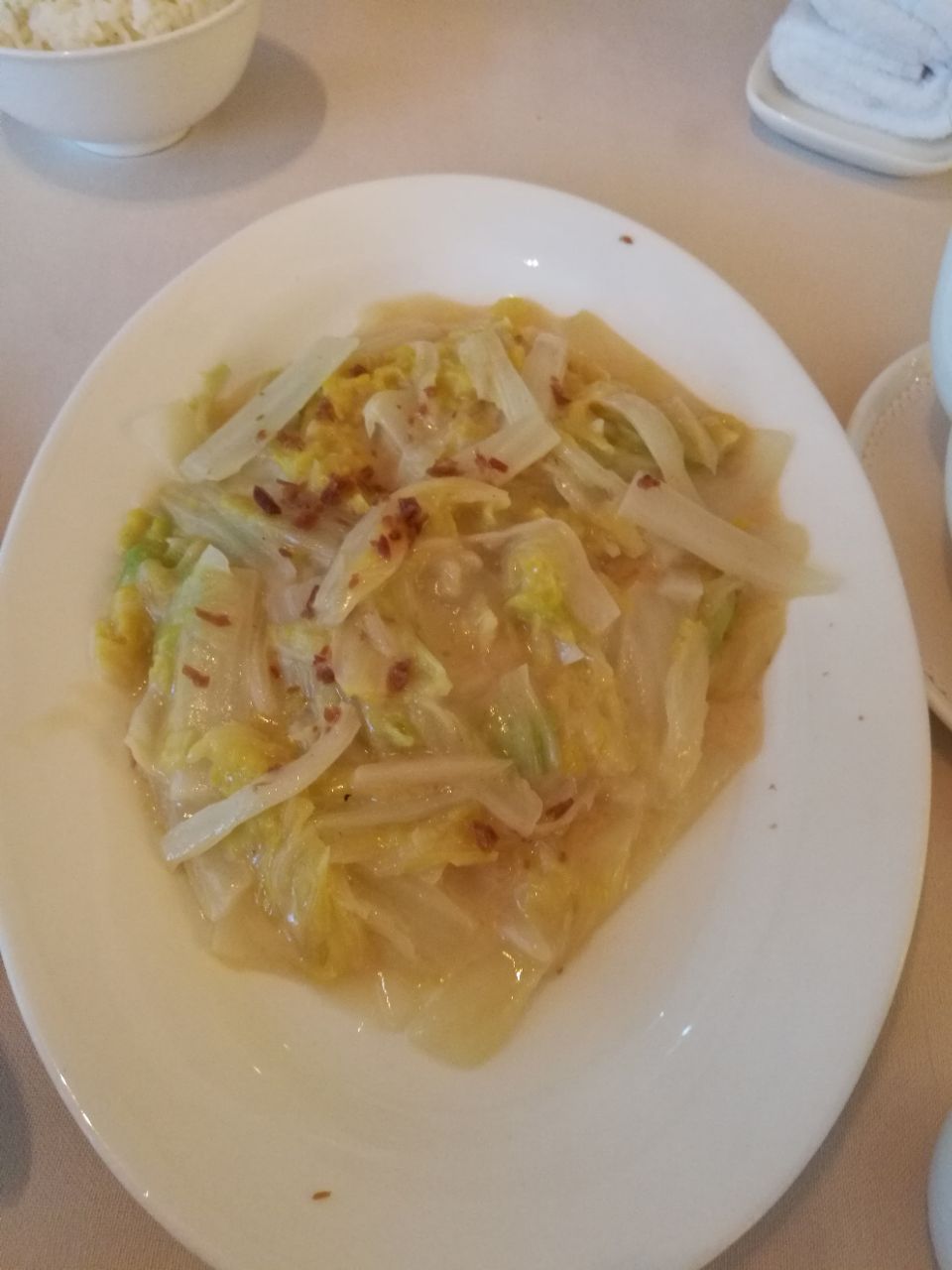 黑松露虾仁可能期待得有点高,感觉一般。苔条小黄鱼味道很不错,鱼刺几乎剔得没有,裹上番茄酱完美苔条小黄鱼味道很不错,鱼刺几乎剔得没有,裹上番茄酱完美!奶油津白其实就是奶油味的煮白菜,味道一般。黑松露虾仁可能期待得有点高,感觉一般。