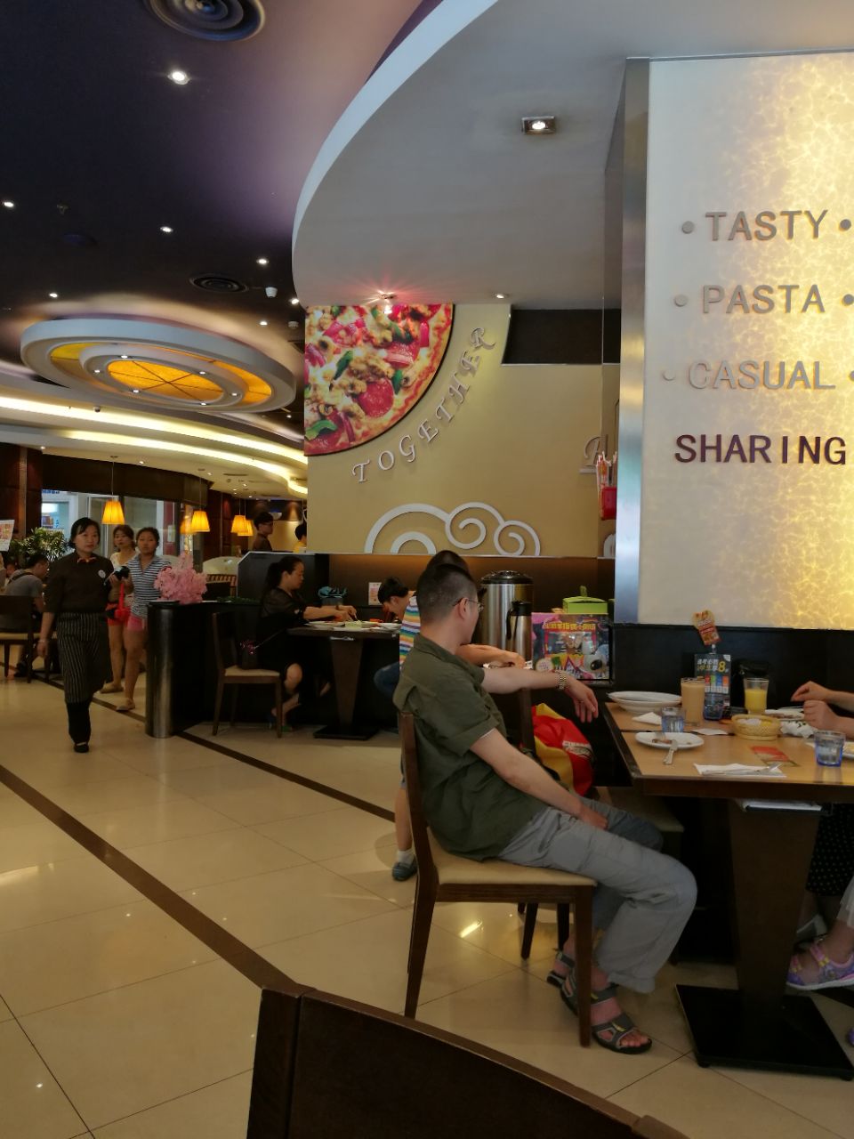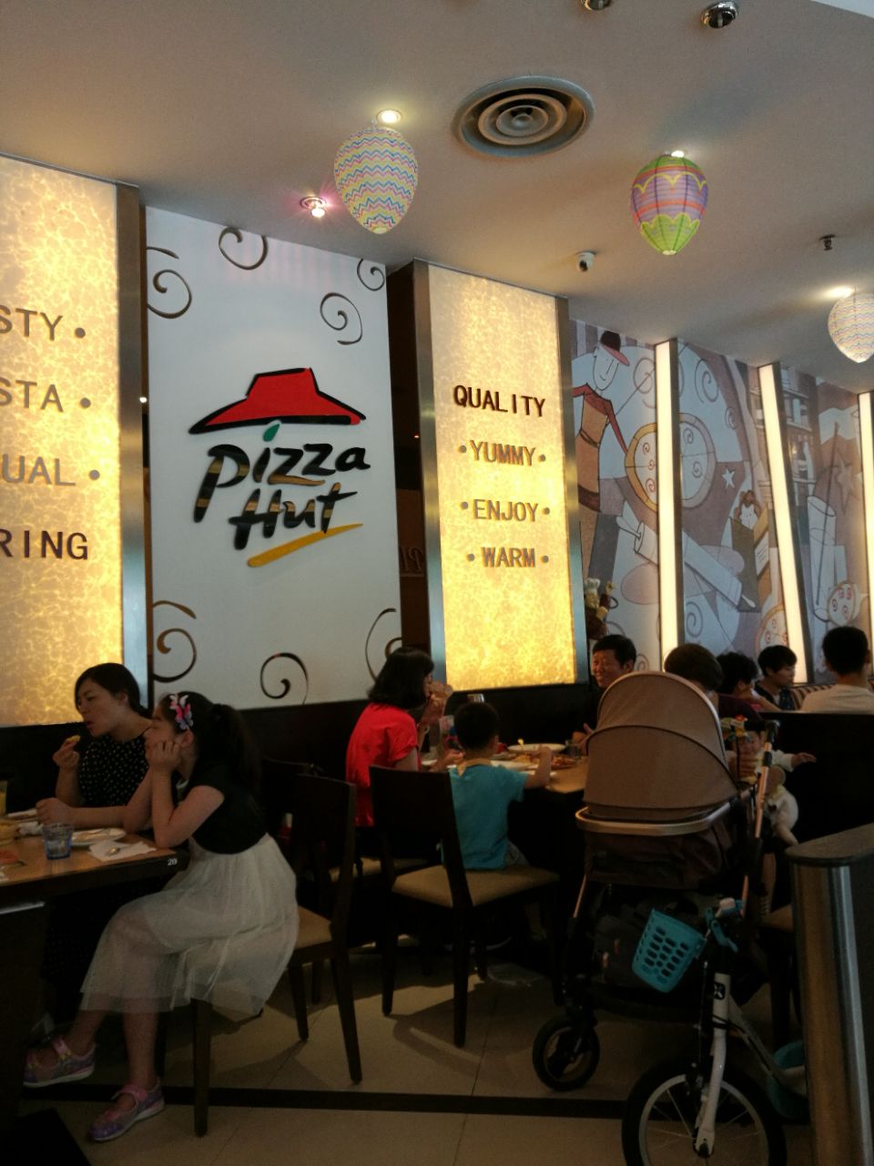 星期天中午过去的,服务简直差得令人吃惊。进门没有人带位,进去也没有人理,好不容易找了一个位置,喊了半天才有人点菜。星期天中午生意挺好,全部基本都坐满了,服务员就看到三四个,人手明显不够。桌子脏兮兮,喊了服务员才来擦。上菜还算快,味道不功不过,虽然和肯德基都是百胜集团的企业,可惜服务比肯德基差多了。后来问了在必胜客工作过的朋友,说现在的必胜客已经不是从前那个必胜客,工资待遇差,能干的人全走了,所以变成现在这样。