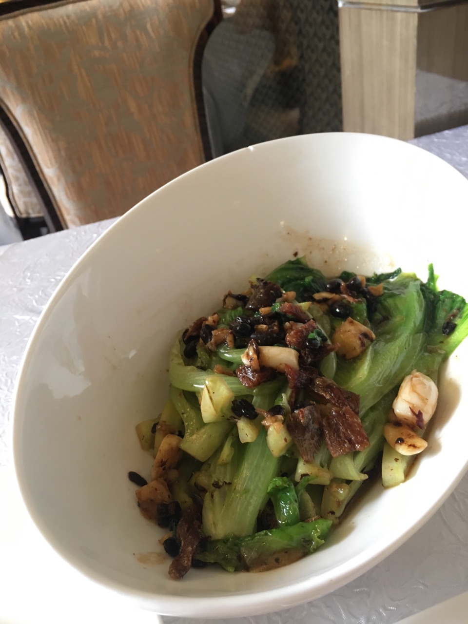 不知道是因为预感到飞机要延误的心情不佳,还是菜品真的太普通,我没有办法给这家店我的bottom up分。(给4-0.1分好了) 但是有一点是肯定的,这家店的菜没有办法改变我烦躁的心情。 上冰水,谢谢,我给满分,然后就开始减分了。 羊肚菌鲍鱼炖花胶,不扣分,大概是我喝不惯,然而蛋白质的酸味确实太明显了。 乳鸽,标准好吃,不过蘸料的搭配带出了很多细心,这个是好评的。 炒饭的功力很到位,米粒都散发着香味,豆豉鲮鱼炒生菜的火候和调味都让我满意。 这么看来,是我心情太差了。。。。(并没有减分呀)大概是午饭没有喝酒吧。 就这么决定了,过段时间再来一次,重新点评吧。