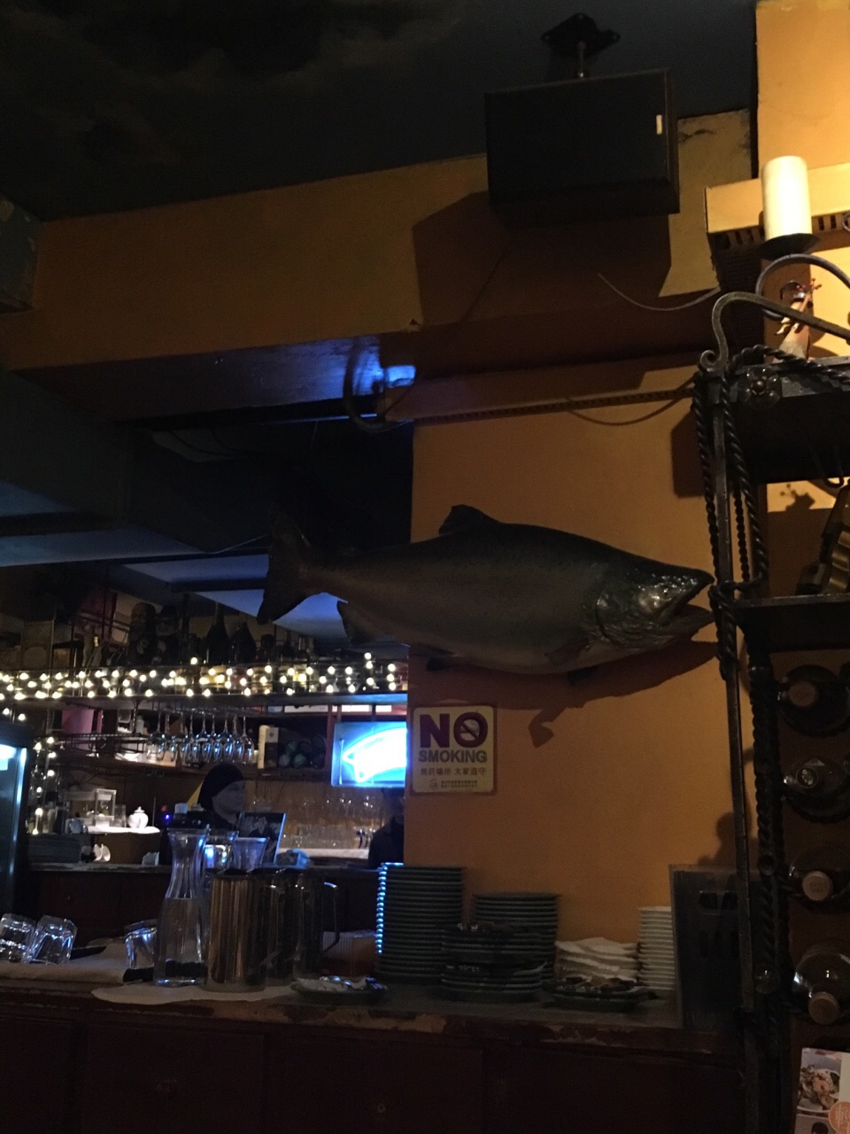 没有看到詹姆士,不给满分(哼) 不要看图普通,来这里吃生蚝,不论生的熟的,大胆的调味一定让你哇哇叫好(请不要因为生蚝就展开哇哇叫的联想嘛,本人比较纯洁) 我非常推荐一个花生酱的口味,要不是吃太饱,真的想再来半打;意面主要靠明太子调主旋律,所以有一种乘船从福冈开到那不勒斯的感觉(夸张了伐?不夸张好伐) 本人有点失误的是,我并没有结伴来吃,尝不到大分量的食物,残念,残念。 知道老詹的朋友们可以来吃一下,万一遇到了就能合影,多么愉快呀! 隔壁的山喜屋也是老詹的串儿居酒屋,两边的食物可以串门!