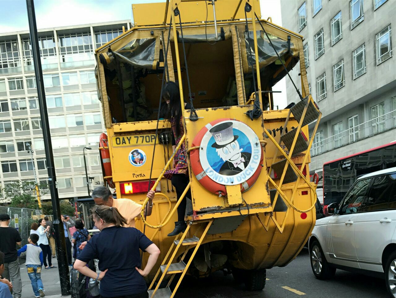 伦敦和新加坡一样也有鸭子水陆观光巴士,它也是黄色的水陆两栖车。车身比较大可以同时乘坐30名游客。它主要在伦敦的市中心行驶,已经游览泰晤士河伦敦桥附近的景点。不过价钱有点贵,一次需要30英镑,个人感觉有些不划算。
