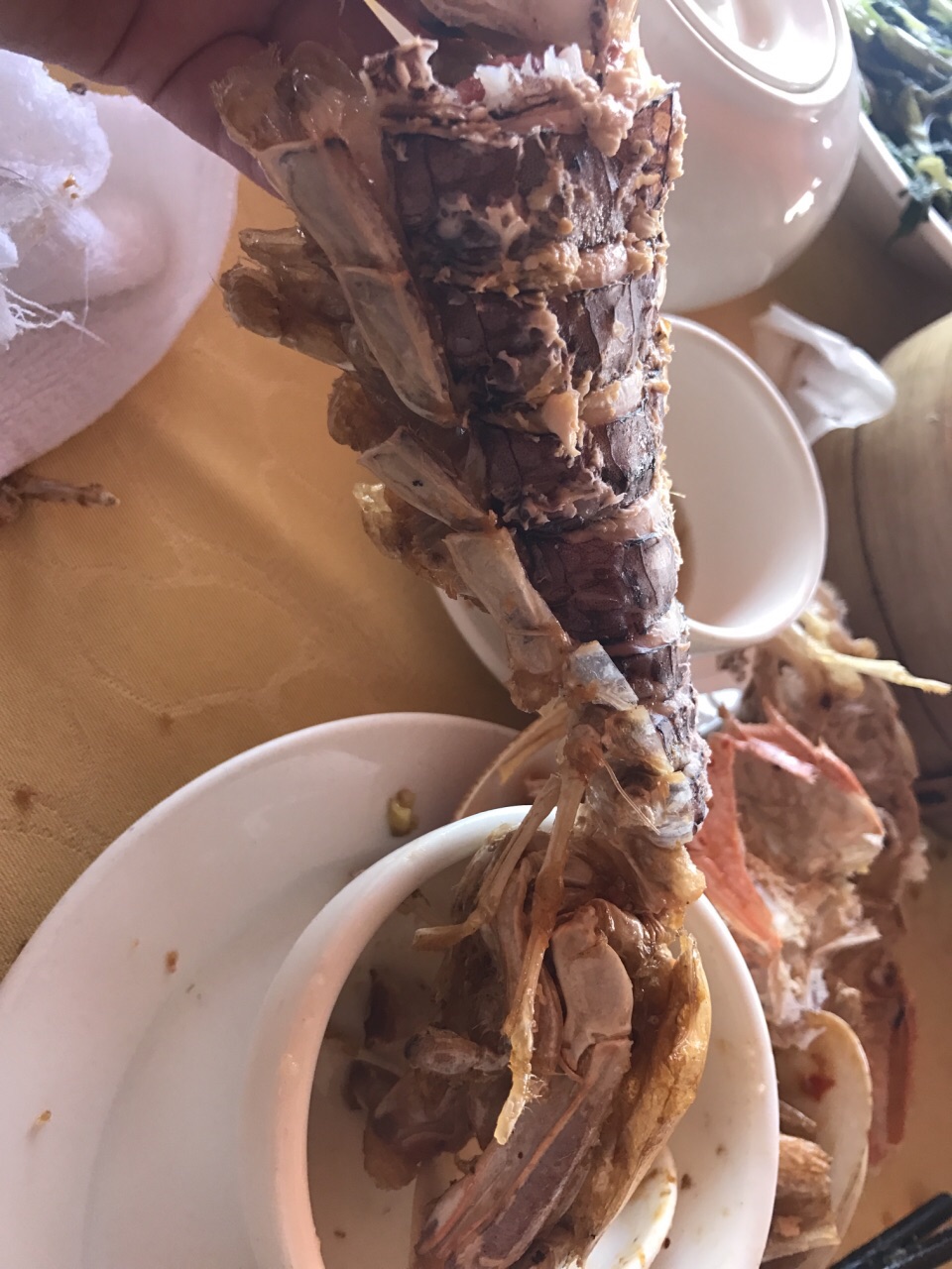 这里的口味超赞,食材都是非常新鲜的深海海鲜。环境有点类似大陆的大排档。看上去环境一般又靠海,海鲜应该没辣么贵,可是,我们想的太乐观了。 价目表上的菜都不贵,贵的都是自己去挑的海鲜。 椒盐濑尿虾,一只差不多200港币,一个扇贝平均50左右。 其实吧,算可以接受的,因为大啊,因为在其他地方不一定能吃到啊。而且香港靠广东也是非常讲究食材新鲜的,所以即使去其他地方也不一定能适合我们口味的。感觉我有做广告嫌疑了,哈哈。 其实附近的大排档也有不少的,甚至也可以自己去海鲜市场买的。 难得壕一次,味道确实好。 吃饭环境就是大排档。 服务质量凑合,可能因为人太多一开始都没有过来招呼我们,后来人少了,有个帅哥服务员自己帮我们剪好濑尿虾。