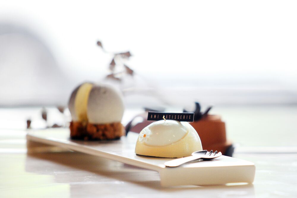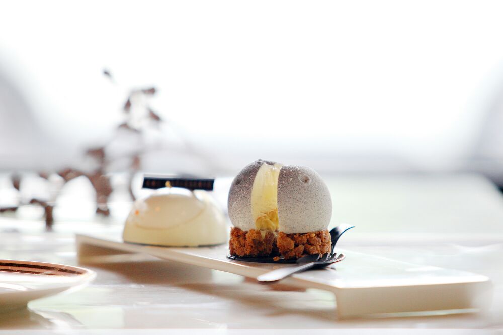 以黑白灰三色搭配装饰的Ami Patisserie,看似简单随意,却隐然透着法国式的浪漫和精致。在法文中,“Ami”是朋友、“Patisserie”是糕点的意思。 店里以烘焙教学为主,同时兼售法式甜点和蛋糕。 若时间不赶,心情闲适,最好是在店中让西点师现烤现做。 舒肤蕾一直是女孩们的最爱,现烤的舒肤蕾,外部因为烘烤而焦脆,内部松软如棉,给味蕾奇妙极致的享用。 作为一枚美食媒体的摄影师,我知道用特写来表现甜点其实更恰当,但是因为甜点做得太精致梦幻了,所以,最终我还是挑选这种全景的表现形式来呈现外形之美。