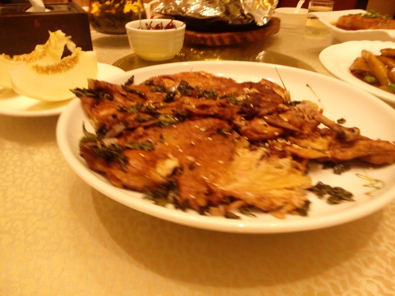 口味纯正,特别是用茶叶当佐料做的香酥鸡挺好吃,还有半份。有豆花也不错,鱼做的也想当不错
