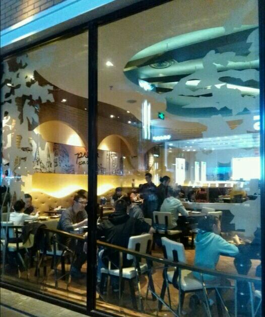 讲真,这家没吃过。巴特,这种店的好处就是口味稳定性极高的吧,所以基本吃一家店和吃十家店的味道差异性极低。本来是这边等朋友准备聚齐吃吃披萨聊聊天,可是天气冷,最后还是决定中式,火锅。不过,在等人的空隙,在这家店里里外外巡视了下,感觉环境还不错,其实主要原因是特别喜欢临窗的座位,而他们家两面临街,真的很爽。下次来可以考虑吃吃。