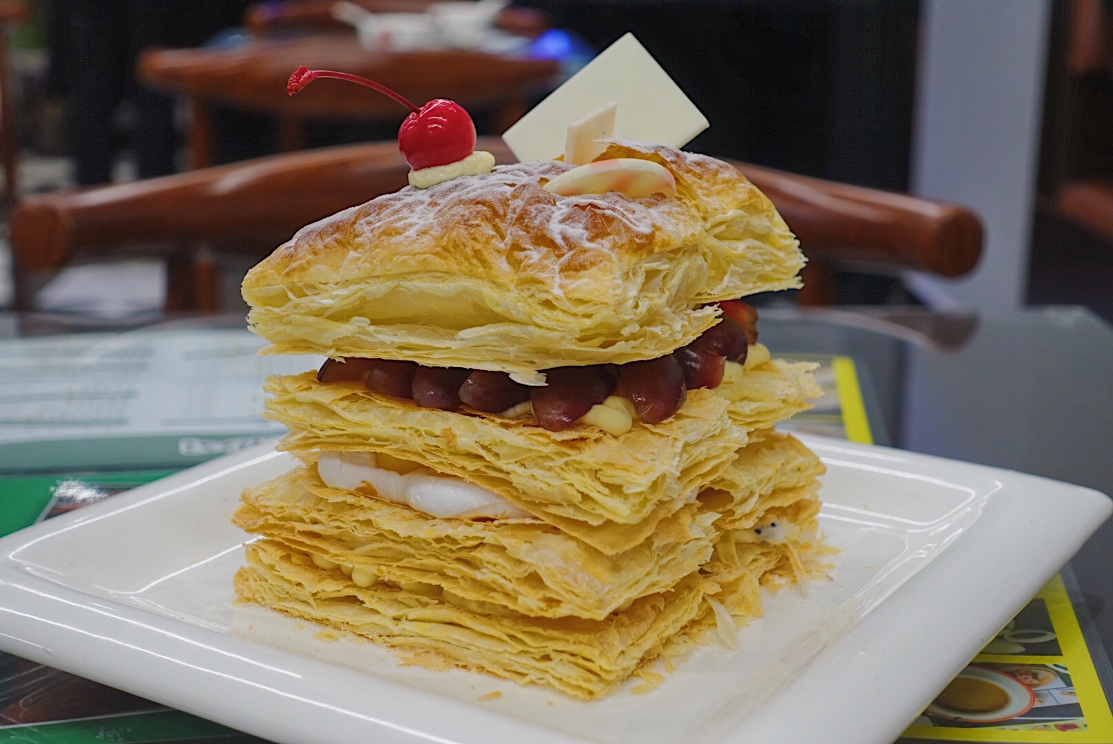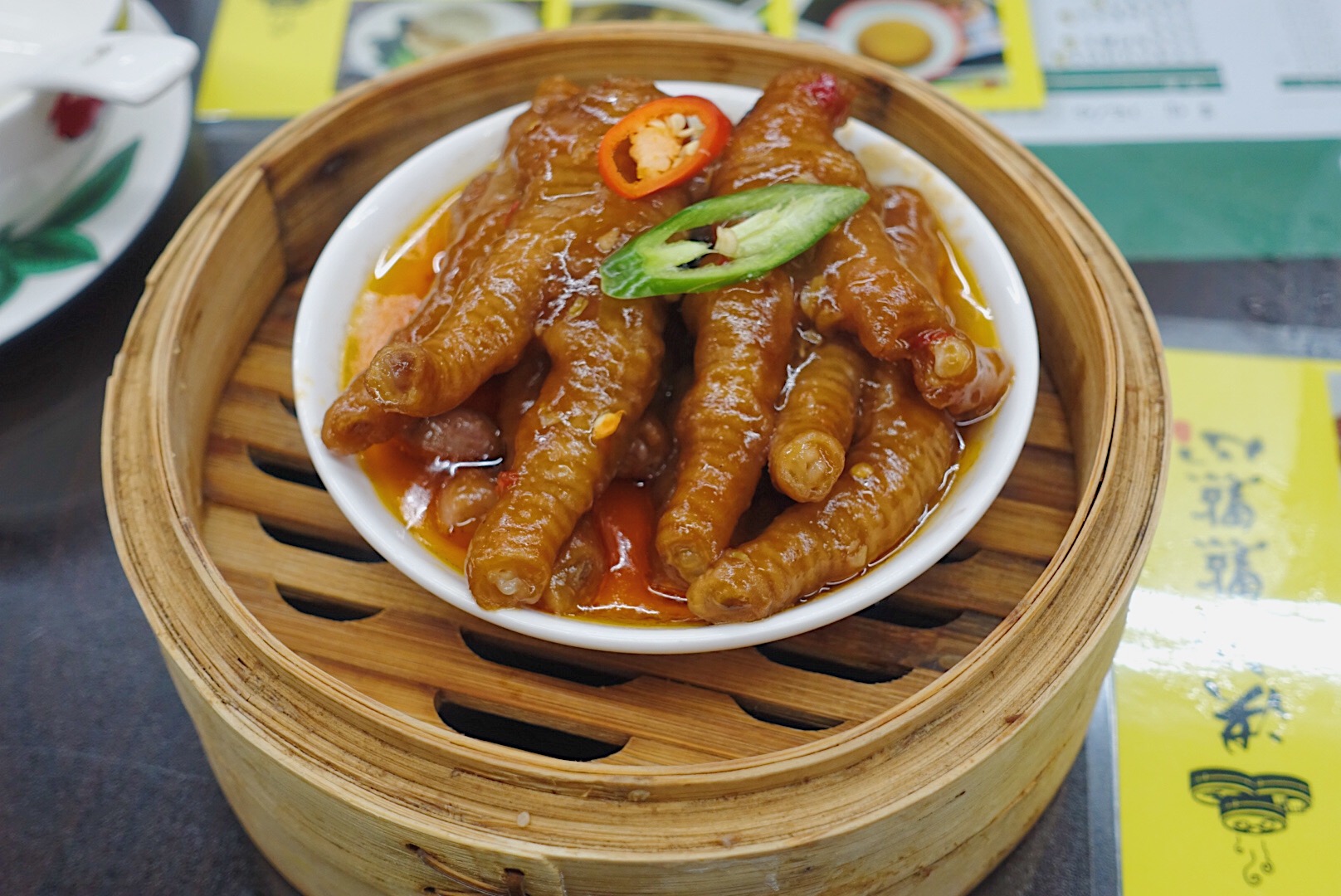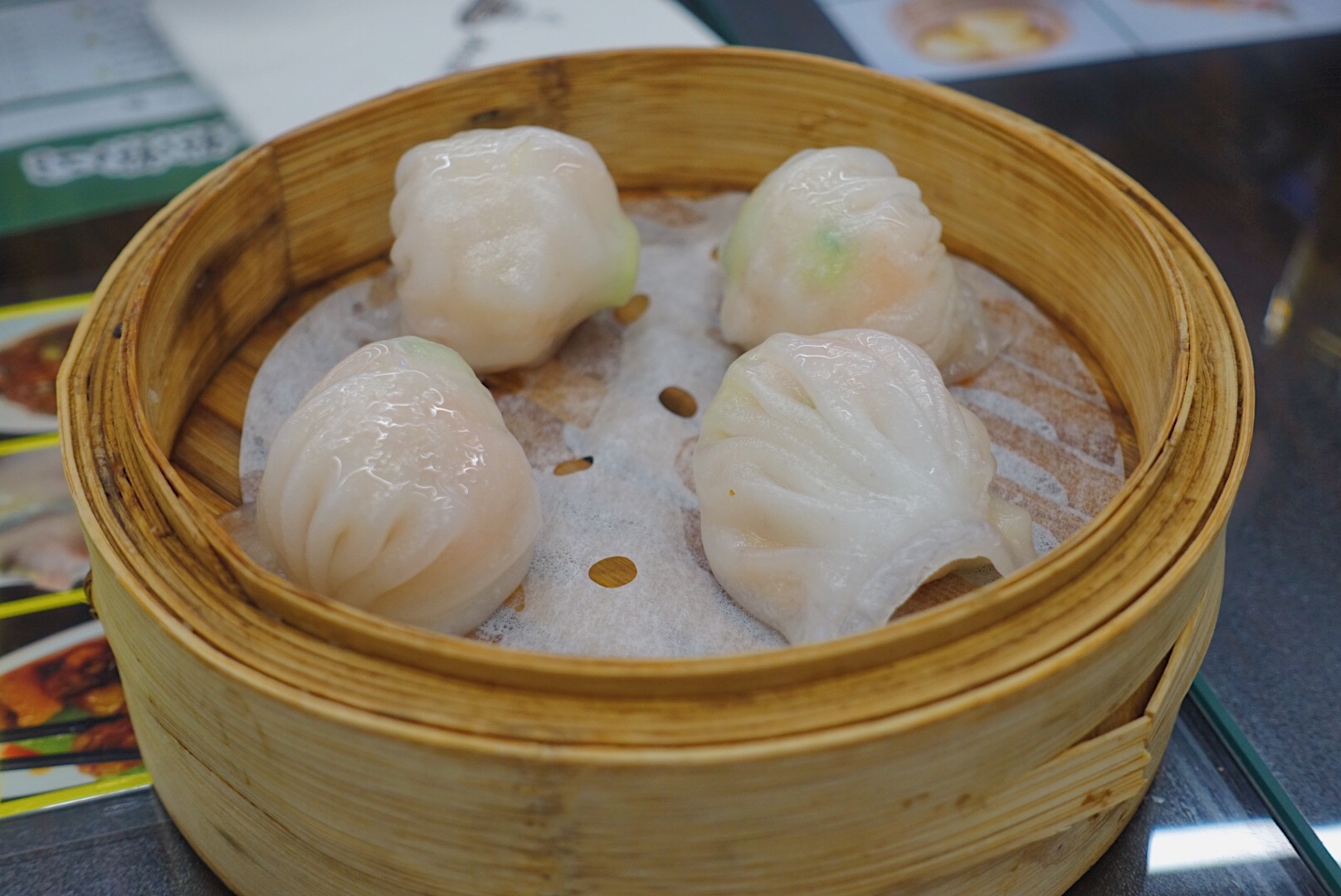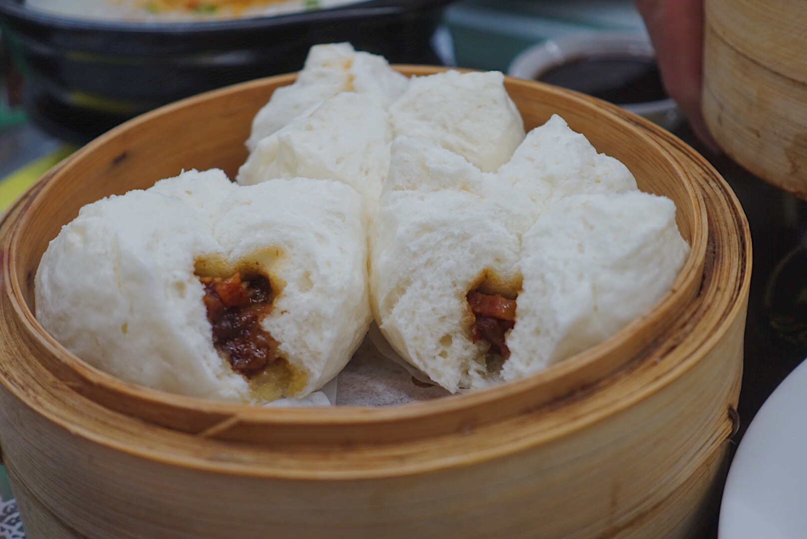 不知为何,作为一个宁波人,却钟爱于广式的早茶文化,对其中的点心的喜爱更是让我有了一种想当广东女婿的心动。而开在月湖盛园的洪记点点心,专门邀请了11位广州大厨,每位厨师都各司其职,制作制定的菜品,让你身处宁波依旧能感受到正宗的港味点心。 作为“点心四宝”之一的虾饺皇自然是来广式餐厅必不可少的一道菜。店内的虾饺皇皮薄肉嫩,透过半透明的饺子皮能看到饱满的虾肉。送入嘴中,富有弹性的虾肉在舌尖跳跃,即使经过牙齿的咀嚼依旧保持紧致肉感。 红米海皇粉:在店内菜品中算是高颜值的存在。粉红的表皮十分嫩滑,而包裹在里面的老油条则显得酥脆,柔中带脆,口感层次丰富。 黄金流沙包:在宁波做流沙包的餐厅挺多,但真正能做到流沙的却很少,在流沙同时又能保证口感的更是少见。用咸蛋黄与黄油作为馅料,用手一撕,包内的流沙就顺着缝隙流出,咸香四溢。 叉烧包被送上来时就被它所带有的浓郁麦香与叉烧香所吸引,店内采用肥瘦适中的叉烧肉做馅。与朴实的面皮搭配,油润而不腻味,但也好怕吃完一笼就饱了,就没办法再吃餐厅内其他点心了。 店内的菠萝包比较酥脆,夹入黄油,待它融化后,散发出浓厚的牛油的香味。 百酱蒸凤爪:店内的凤爪很特别,即不显过于油腻,且骨脆肉滑,一个人也可以安静地嚼完一碗。 拿破仑作为店内新品,端上来后就被大家相机轰炸了一番。表皮酥脆,内部夹有红豆、奶油、水果馅,不仅好看又好吃。