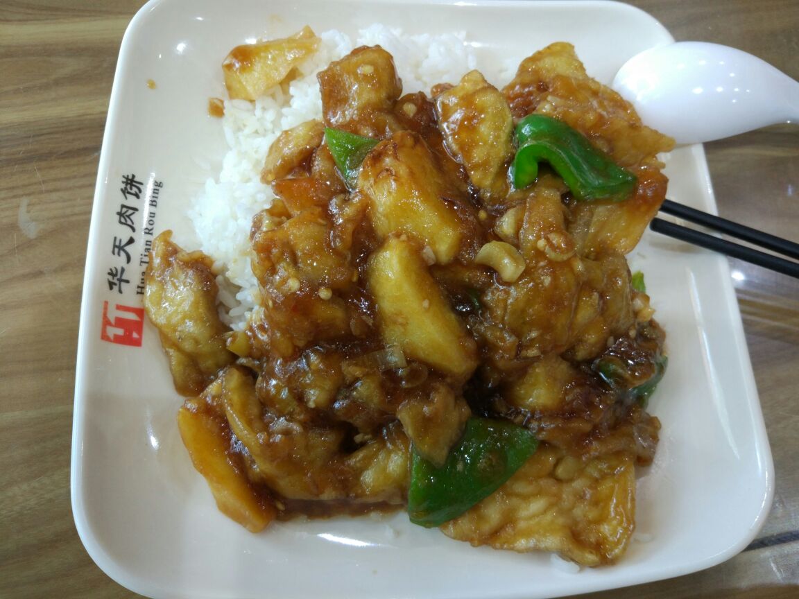 华天肉饼店现在联手支付宝的口碑商户,每天吃饭时间都会有立减劵,今天中午抽了一张5元立减劵,午餐就在这里解决了。一个人吃饭,最怕的就是人多等位,今天还好,一层就有一人一个大桌子,点了地三鲜盖饭,原价15元,实际支付10元,还是挺划算的,一个人吃足够了。