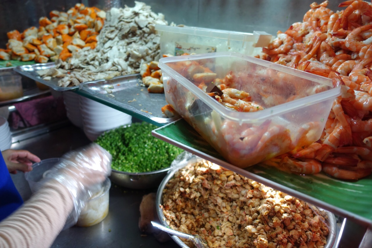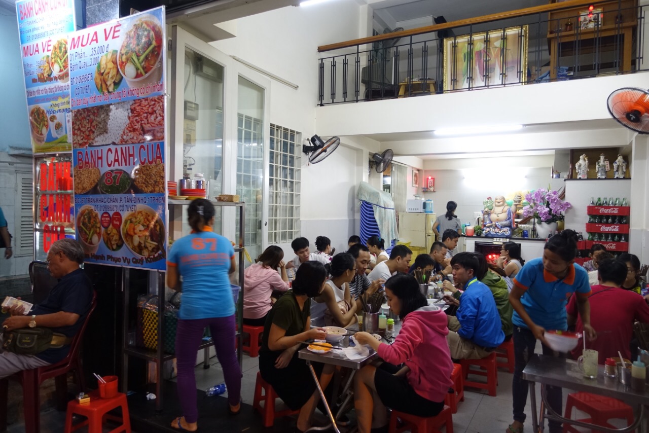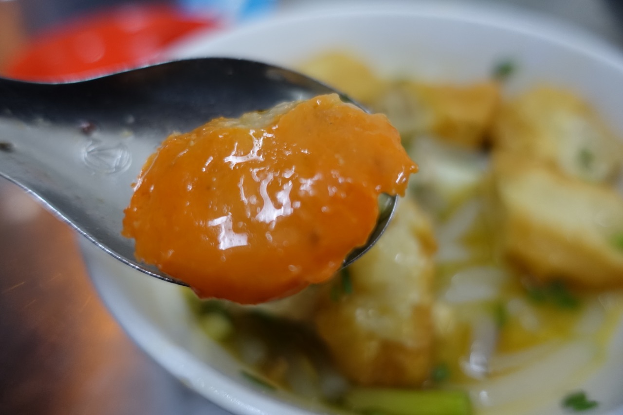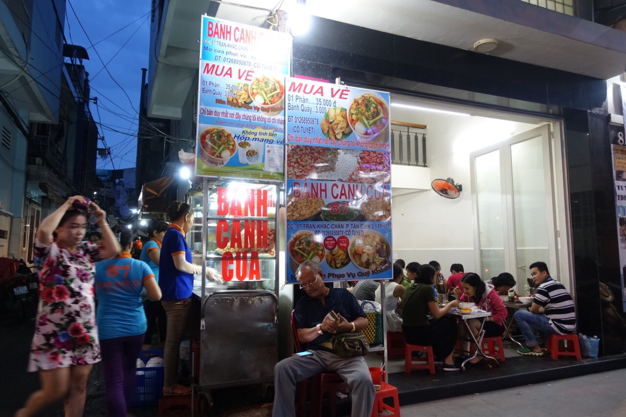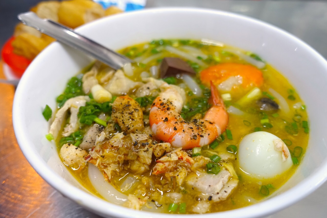 胡志明市超级网红小摊,Banh Canh Cua! 蟹肉海鲜米粉!全场只卖这一种食物,所以我去了只需要比划“1碗”,就行了,越南语白痴的我也不会饿死了。这间店并不是在市中心,但是我采访了同桌的食客們,市中心住的人也都会特地跑过来吃。用料超足,还配一碟油条。汤汁冒着香浓的海味,比筷子还粗、弹性超好的通透米粉,加蟹钳肉,虾,鸡胸肉,鸡血和鹌鹑蛋,超棒的搭配。价钱绝对便宜,只要3万8千越南盾,大概折合人民币11块。如果你来胡志明市,强烈推荐大家来试一下。(门口坐着收钱的老板就是活招牌!下午2点才开始营业哦,我上午来的时候还没开门,完全以为是一个待装修的店面,连招牌也没有呢)