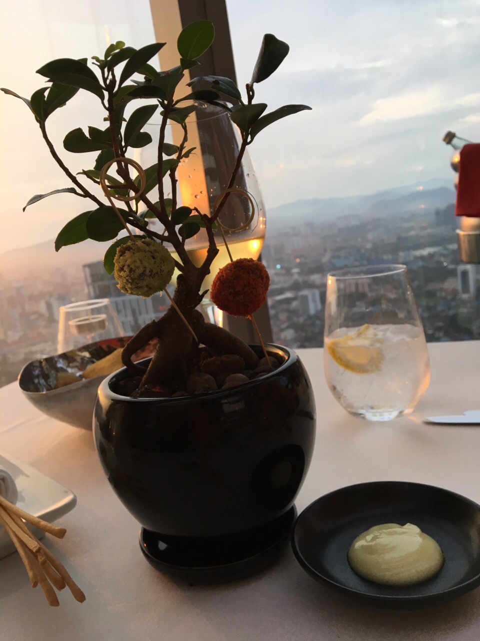 非常满意的一家餐厅。 餐厅位置很好,就在双子塔旁边。 餐后还可以去旁边的酒吧喝点东西欣赏一下风景。 菜品很精致,味道也很有水准。 对得起这个价格。 服务非常贴心,男朋友一直在吃面包,服务生就不停的来刮面包屑。 这样的服务在上海算是难享受到的。 每道菜都有详细得解释,还是不是几个小食。 饭后送的巧克力很赞,最喜欢焦糖海盐味道的。 总之是一次很好的用餐体验。 非常对得起给的小费。 推荐!