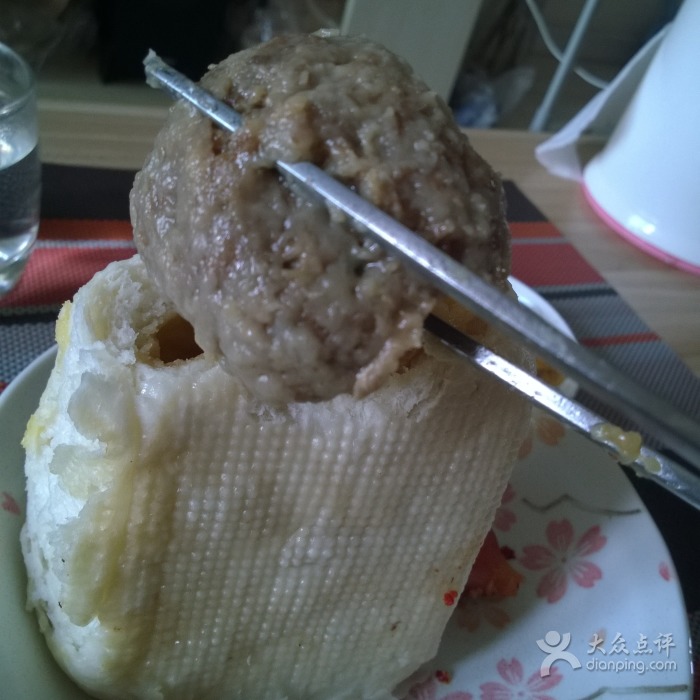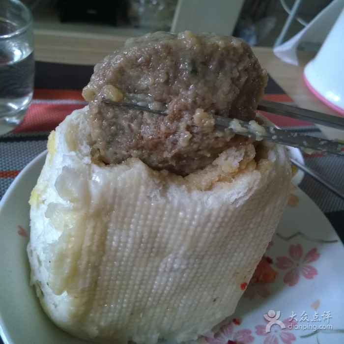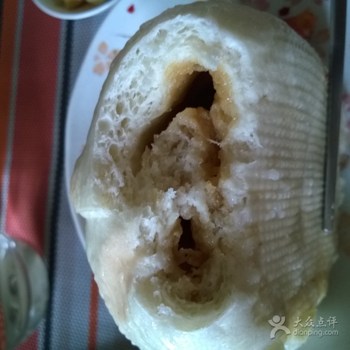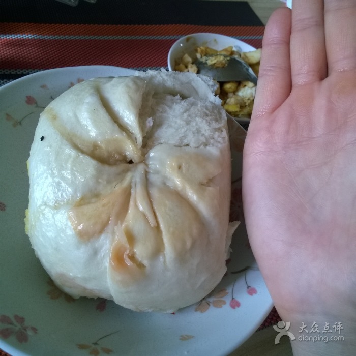 店面小的可以忽略不计了,包子真心好吃。个头大得惊人,比手掌还要大,像K 记和M 记的汉堡一般大小。包子皮应该是那种老面发的,有韧劲但气泡孔也比较多,肉馅的调味是比较传统的五香味,除了有一丁点肥肉再,绝大多数都是瘦肉。2.5元一个。