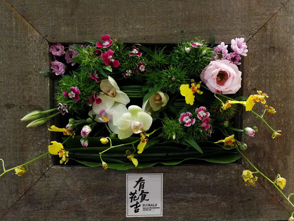 有花食吉,不仅是餐厅,周六、周日下午还有主题花艺课,推广价260元/节,4000元20次,包括花材、器物、工具,美学老师主题讲解与授课,下午茶,作品可带走。 某周日下午,朋友带我参加了一堂兰花画框的花艺课。 承认自己是个花盲,并不是件容易的事。除了一些极其常见的花卉,其他的我基本都分不清,有时连自己种的花都不知道名字,被人问是什么花时,往往支吾难言,尴尬不已。 但其实我很喜爱花花草草,喜欢它们明媚的颜色,喜欢它们的清香,喜欢它们带来的生机,驱散眼前的浊气与烦心。 所以朋友带我参加花艺课,我也是满心欢喜的。 某个周日下午,来到位于环岛路附近的有花食吉,这是家有花园的餐厅,花园里鲜花多肉绿意盎然,餐厅里随处可见的绿植,还有一个大大的花艺工作室。 今天花艺课的主题是~兰花画框,沉重的木头画框,里面是一大块固体花泥,起固定和保湿的作用。 我们的美学老师,果然懂得花艺的美女都不差,气质如兰,温婉似玉。 在她的指导下,我们先将某种植物的枝条(我真不知道名字)截短,用铁丝扎紧,然后两端插入花泥,做个基本的架构。 接着是将一片大叶子裁成两段,长度大约比画框多出少许,剪去多余的叶片,重叠后安放入画框底部,就象这样: 然后便是利用提供的花草材料,剪成适当的高度,插满画框就行了。说来容易,做着却难。 一要突出兰花主题,所以其他的花不能太大朵,花色也不能过杂,以免喧宾夺主。 二要有立体感,可以利用黄色的跳舞兰,营造游离画框的感觉。 三就是要将画框铺满,不要露出大面积的花泥,最后可以用零星的小花或花骨朵,在最后阶段填补缝隙。 花艺是比较主观的东西,美学老师主要是在开头、选花、定位等时刻提点你,剩下的要靠自己发挥。不过,花本身就是美,无论如何都不会太难看的。 这是我第一次花艺课的成果,还行吧? 把作品带回家,每天往花泥上浇些水,过了一周后,除了少许当时没插好的蔫了,其余的仍然生气勃勃,有些花骨朵还开了呢!希望这份欣喜可以再持续得更久些。。。