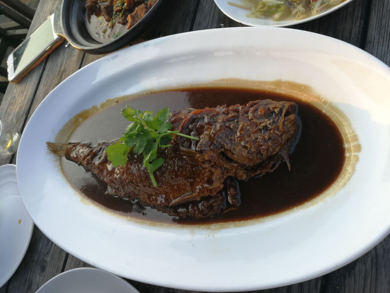 饭菜推荐炒茉莉花跟醋鱼,红枣发糕特别好吃,环境超美,建议晚一点去可以看日落,可以看夜景,特别提...饭菜推荐炒茉莉花跟醋鱼,红枣发糕特别好吃,环境超美,建议晚一点去可以看日落,可以看夜景,特别提醒的是去一定穿长裤,露台蚊子多。