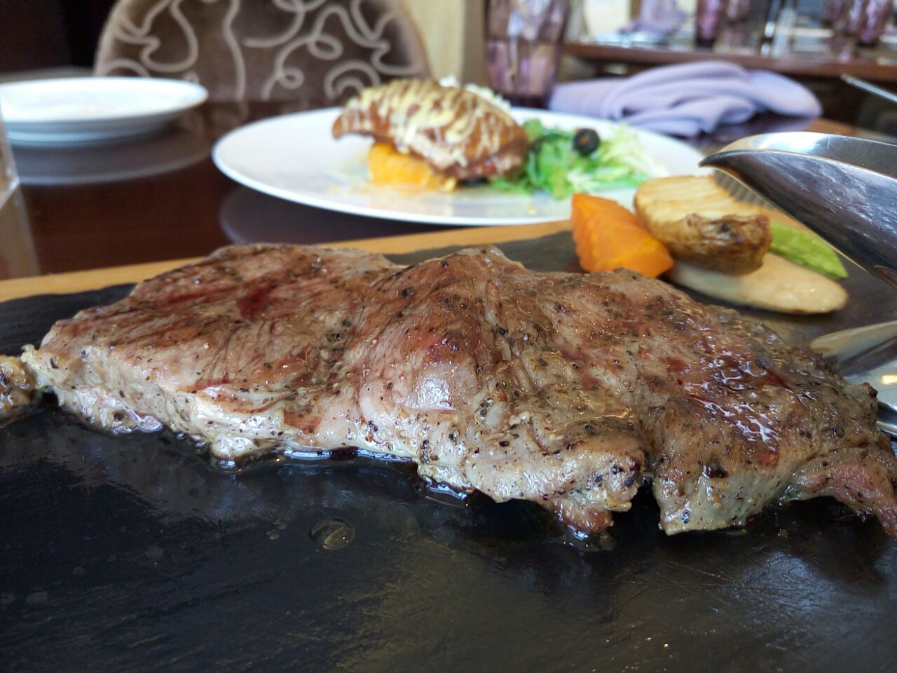 餐厅环境很好,我们很早去位置任选,午餐套餐很丰富,从前菜沙律,汤到煮菜,甜品,饮品都有,很丰富。服务员会似乎你进食的速度为你上菜,所以一顿饭吃紧过来起码两个钟,要是赶时间的话,就不推荐来了。我点的蘑菇汤很浓郁,西冷扒很大一份,味道很够,吃完非常撑,雪糕甜点是雪芭,有点偏酸,其他都挺好的。