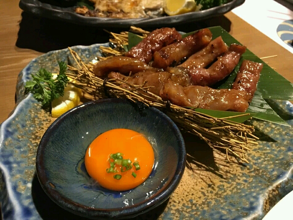 不过吃起来感觉也吃不出什么特别的,寿喜风味牛肉串会配一个生鸡蛋,沾着吃很特别,但是又不同于寿喜...食材据说都是北海道空运,不过吃起来感觉也吃不出什么特别的,寿喜风味牛肉串会配一个生鸡蛋,沾着吃很特别,但是又不同于寿喜锅的那种感觉