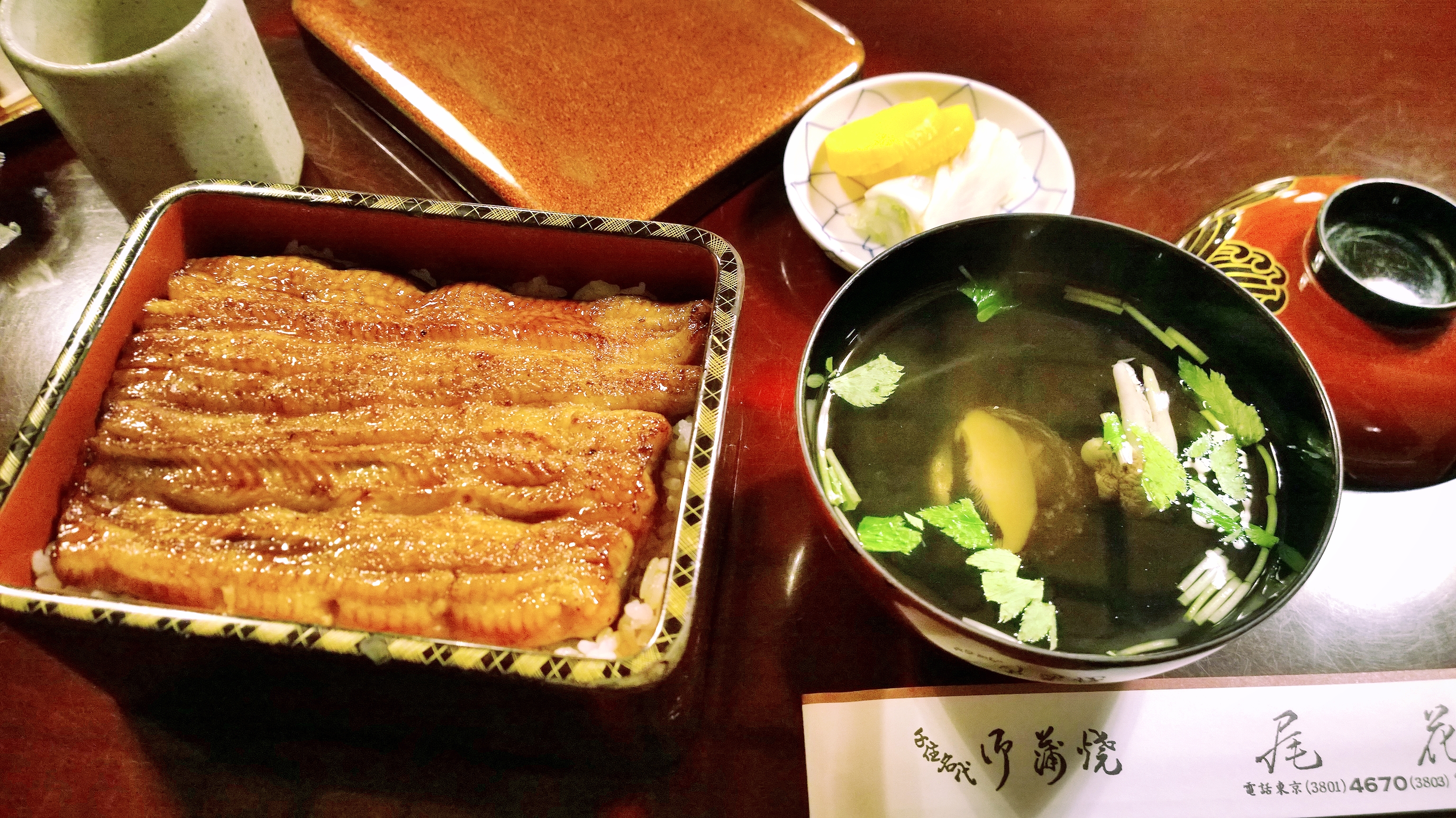 米其林一星鳗鱼饭-尾花,藏在遥远的东京都北郊南千往,从银座过去大概半个小时。这边真正具有浓郁的东京市井气息。靠近铁路,出了地铁站前前后后绕了好久才找到小店。但是如此精致的和式庭院着实让人惊艳了一把!清爽又不失高雅。 需要脱掉鞋子进去,榻榻米大厅一尘不染。内部装修简单却又无比奢华,尤其是洗手间,堪称顶级酒店级别!来这里吃饭的都是日本人,也不乏我这样的本地孤独美食家,上了年纪的中老年食客也不少,可见是一家老字号。 选择了鳗重套餐+鳗肝汤,原汁原味口口入心。关东的烤鳗鱼做法,现点现杀现烤,鱼皮非常焦香。味道完全不是国内一般日料店能做得出来的!搭配爽口的鳗肝汤特别舒服!虽然是现做的,但上菜速度还挺快~ 服务员除了一位美丽的日本姑娘全都是奶奶级别,都很客气,令人舒服。奶奶还慈祥的问我是不是Chinese,帮我拿了一本特制的中文菜单。 其实做攻略时本来是要去同样为米其林一星的五代目野田岩,但还是更喜欢尾花的传统环境,看来没来错呢~