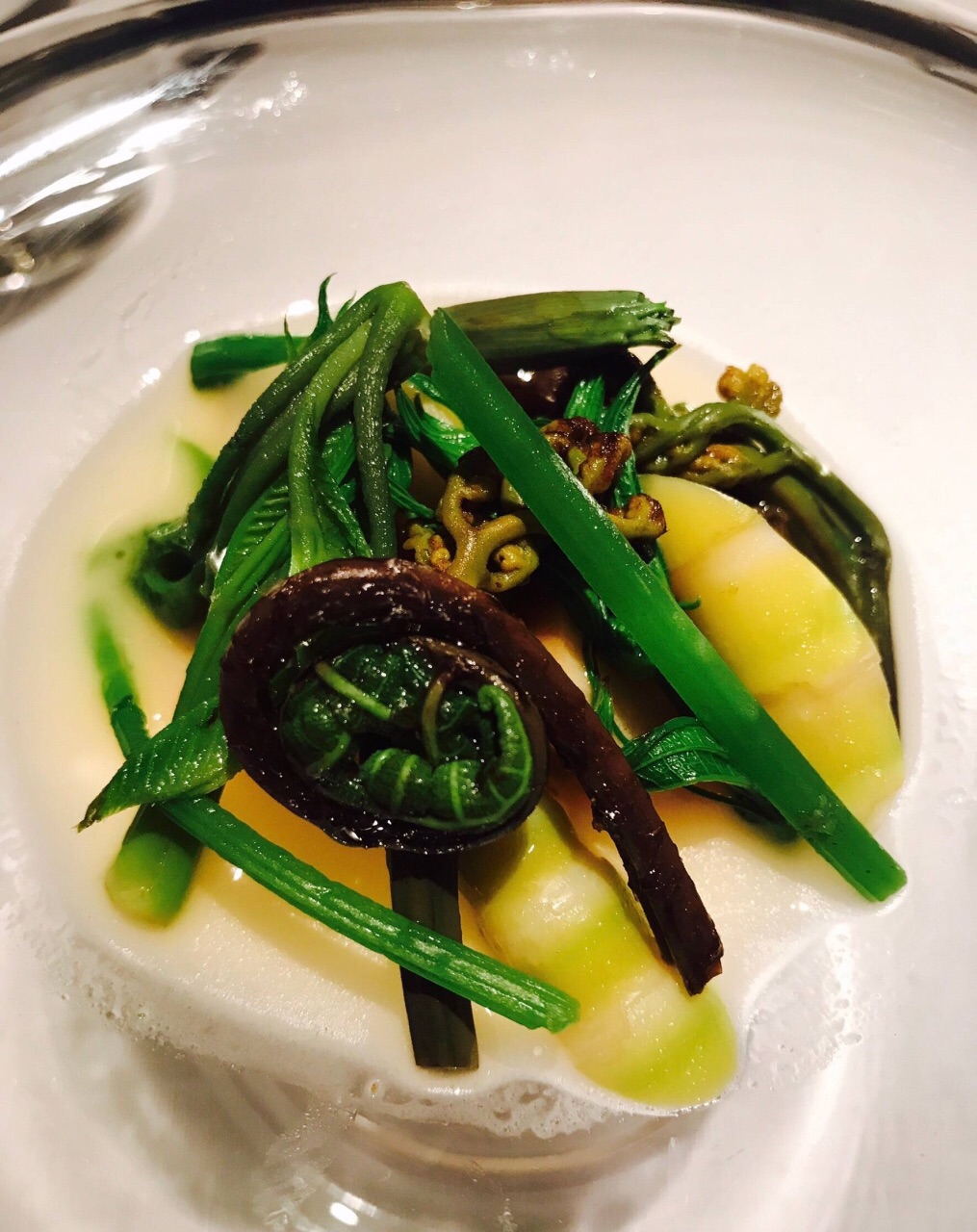 甜品用了當造水果以及用四葉草打成的雪葩,petit four裡面曲奇和朱古力棒都出色,還有一小杯花生奶配合抹茶來喝。很有特色的一家餐厅 把法餐和日本料理精致的结合在了一起.每一道菜都很有创意,也很环保! 森林发酵面包,炭块神户牛肉,樱花鱼…