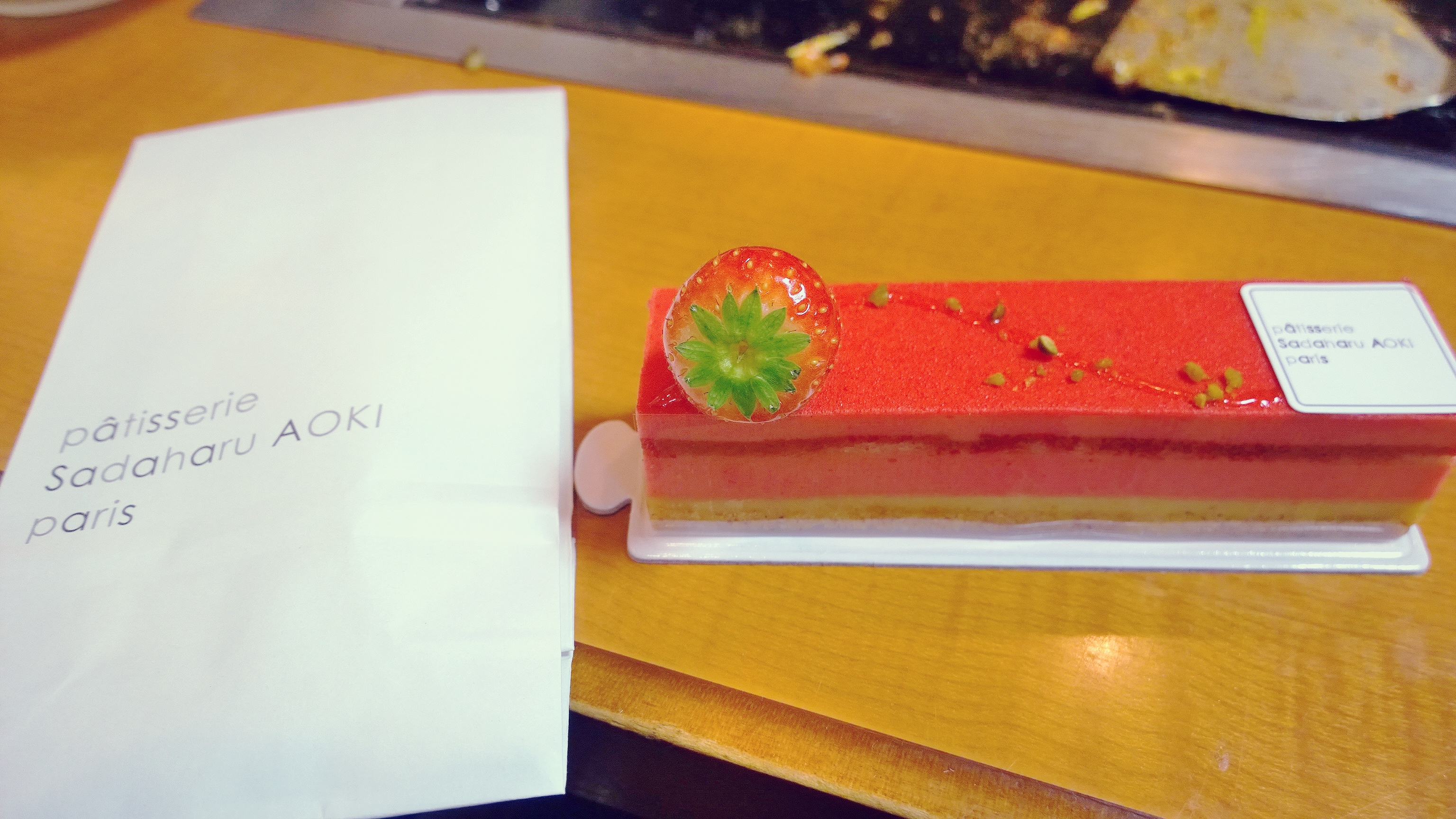 来东京怎能错过各式各样的高级甜品店。说其东京的甜品,估计连法国人都会自愧不如。结合了日系的精致与法式的浪漫,青木定治堪称东京本土甜品的典范,味道不输给巴黎的PH 东京站很大,从老站的那一侧出来便是繁华的丸之内,日本真的很擅长把车站搞成CBD大商圈。丸之内正面复古设计的东京站,到处是设计感极强的玻璃幕BOX写字楼,品质秒杀国内大部分CBD 就在爱马仕旗舰店隔壁,大晚上去拜访了得到法国人认可的青木定治,所幸大部分产品都还在,只是不让堂食。纠结是选择SAYA还是BAMBOO。怕竹子味道会很怪,选择了前者。SAYA是混合了开心果和树莓的慕斯蛋糕,入口超级细腻,整个蛋糕法风十足。由于过了堂食时间点,只好打包带到月岛的文字烧店啦,日本的服务还是很贴心的,包装很好,慕斯没化蛋糕也完好无损。