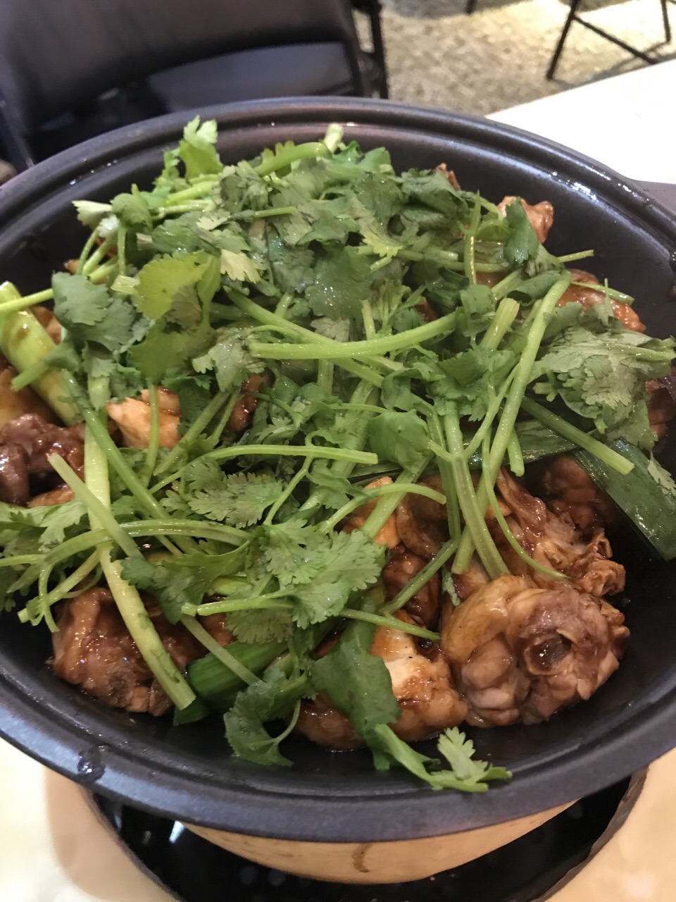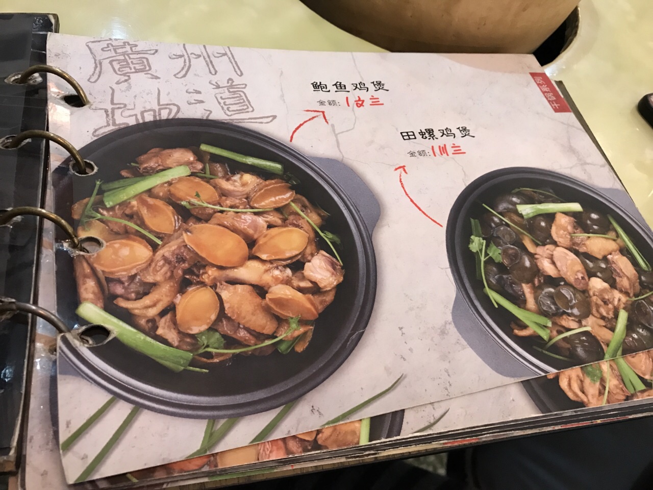 朋友说这家很好吃,之前在芳村,现在江南西也有分店,好在晚上6点去到,晚了就在等位。 菜牌上的价钱那些字,真是不习惯看,一个普通鸡煲要100元+,2-3位用,鲍鱼鸡煲,花胶鸡煲198元,还有其他品种,配菜多数8元,汽水4元一瓶,每桌赠送生菜一碟,鸡煲有点咸,酱汁浓稠,看个人喜欢,份量一般,吃完出来还有人等位。