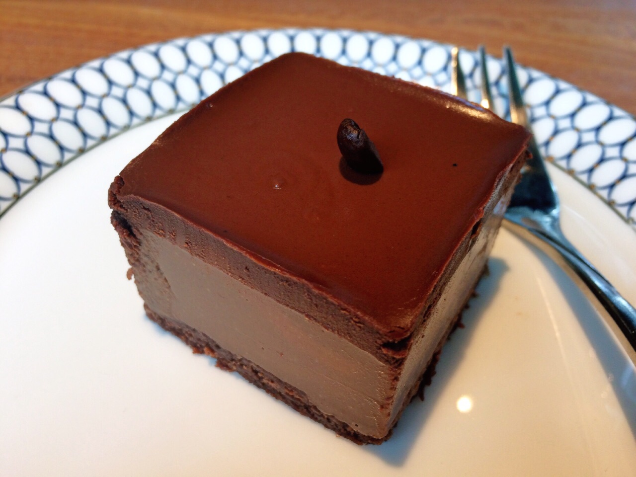 甜品纯素巧克力慕斯蛋糕说是用豆乳制作的,会更健康,口感很粉但是不甜,满足了怕胖但是很想吃甜食的朋友