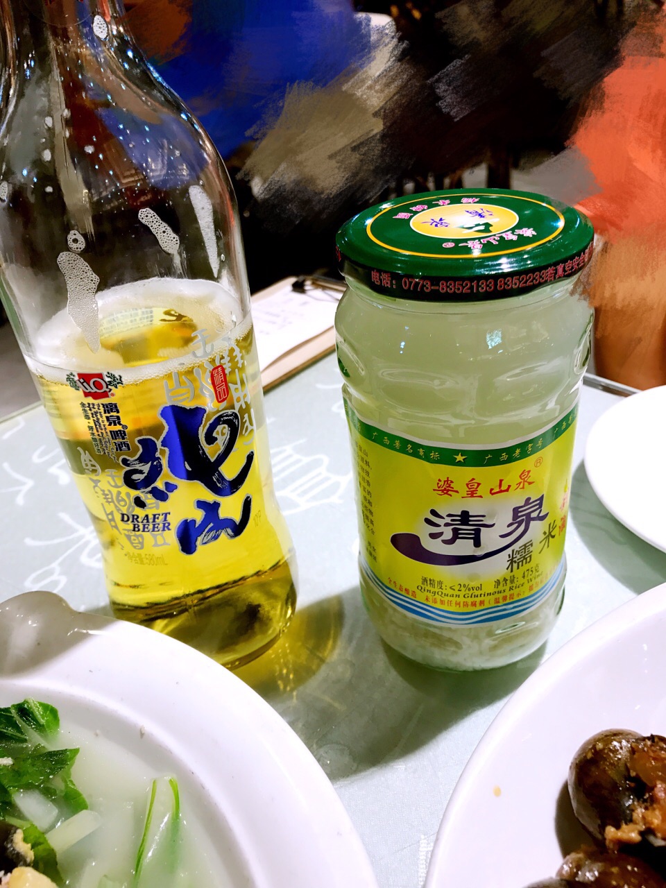 特别喜欢酿田螺,味道鲜美好吃到停不下来,啤酒鱼也比较不错,这里的啤酒和米酒特别棒,可能是水质好...
