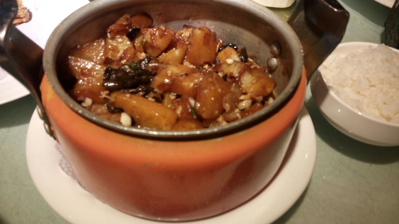 这家店是附近比较大的饭店了,一般的家庭聚会,结婚办满月酒,同学聚会都会去的地方,因为周围大饭店太少了,它家的烤鸭卖的不错,本人不吃鸭子所以…。店里边的菜味道不错,我们每次都点四喜丸子,压锅做的菜,因为有老人,感觉像是以东北菜为主的,店里有会员菜价,积分还可以当钱花,服务态度比较好,由于来吃饭的客人多,上菜会有一点点慢,总体来说不错,和家人过年过节聚餐都会去。
