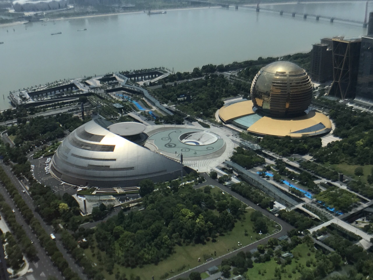 杭州最重要的CBD「錢江新城」,此處是杭州最重要的金融,行政特區,除了節比鱗次的現代高級辦公大樓外,還有文教方面的設施,包括新月型的杭州大劇院,金色球體的洲際酒店,組合成日月同輝的城市意象,大廣場的地下室則是體量龐大的outlet,四周環列高檔的餐廳及購物中心,給古色古香的傳統杭州旅遊市場,注入一股現代的活力。