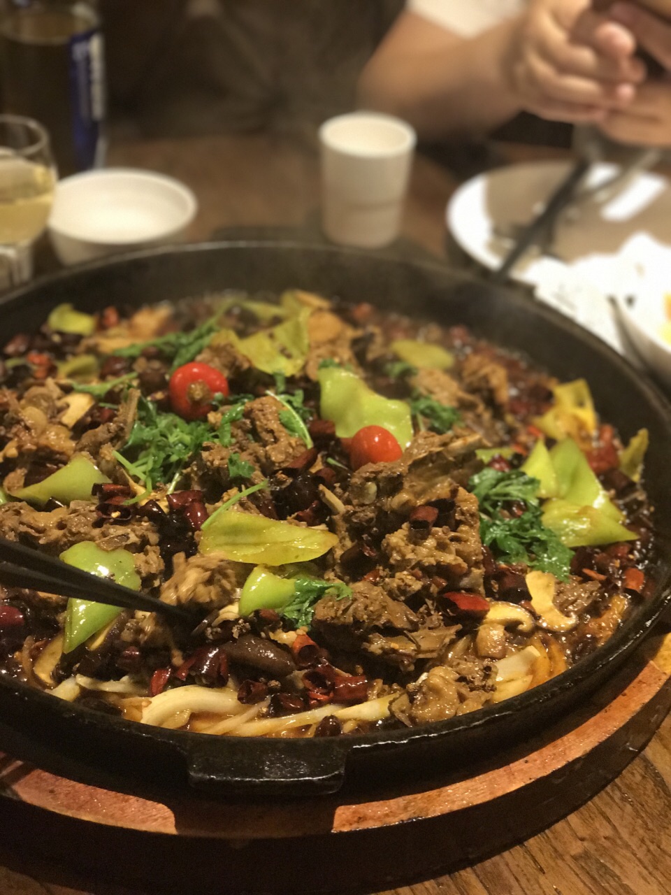 中午约了高新区的朋友一起吃饭,为了不排队特意等过了饭点再去的,自从这家单店上了必吃榜后就更火了。他家服务也是众分店中最好的,点菜上菜跟进都比较及时,所以在这里吃饭还是比较舒坦的。 一行五人点了4斤鱼,3斤羊肉,外加几个炒菜~ #老板恋上鱼# 这种必点菜除了稍微油腻点外,味道深受济南人民欢迎,4斤的大份被我们消灭精光,中辣依然过瘾。过油后用多种中药材搭配的味料铁板烹制,外皮有嚼劲,内里则鲜嫩可口,入味丰富; #老板东山羊# 第二次吃他家的东山羊,小份3斤,没有他家回鱼那么出名,但也配得上一句“不错”,稍咸,里面肥瘦相间的羊排最香,被汤汁浸透的碎肉也很好吃,四星; 其他小菜就是个搭头,尝尝就好,懒得多说~ 吃掉罪恶的两碗米饭后,我只能晚上在健身房多多挥洒汗水来消耗午饭的热量了