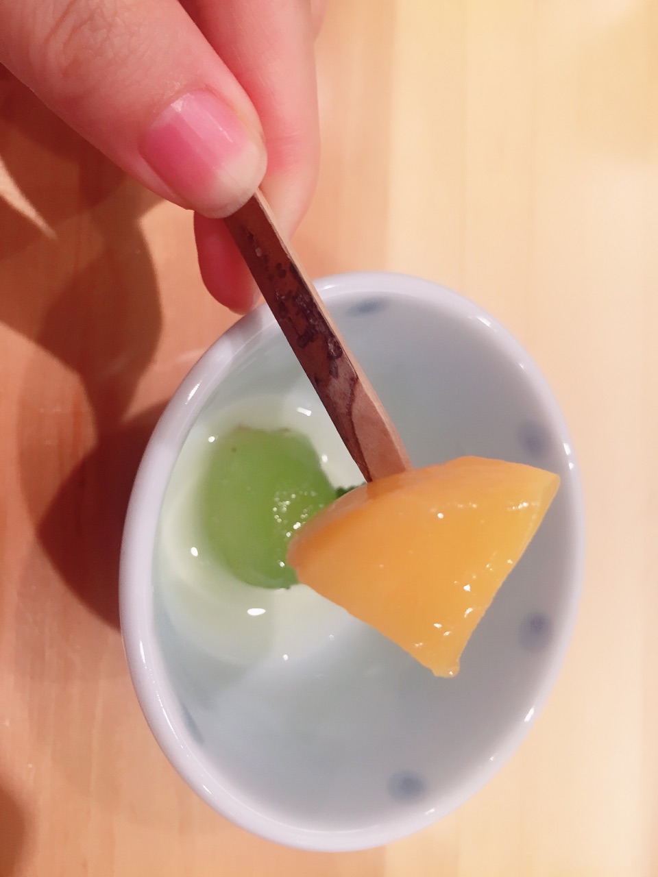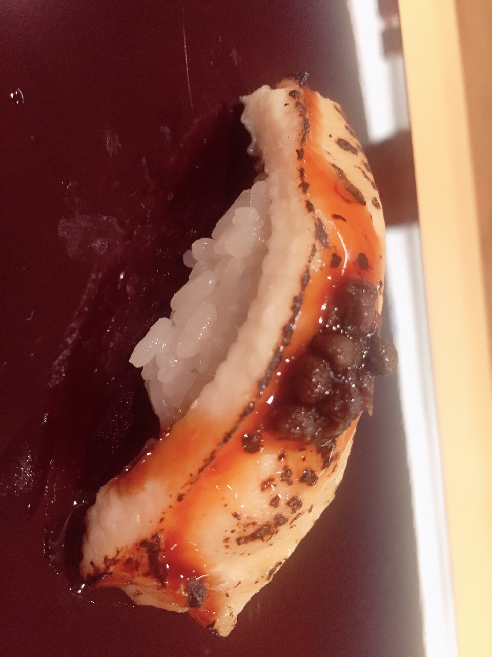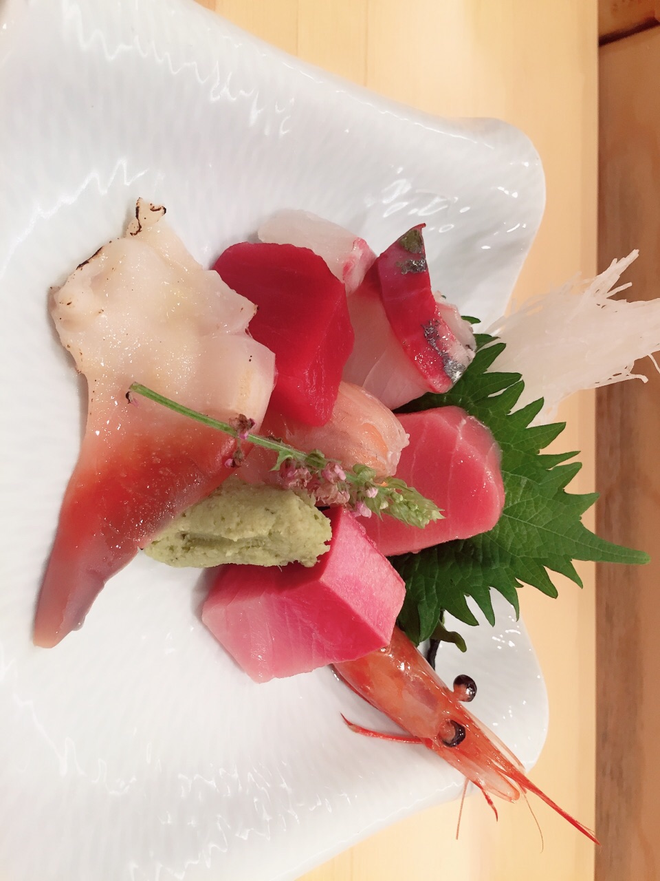 还有师傅用现有食材做的梅子卷,敲好吃。食材由当天决定。寿司要用手品尝哦~刺身按照顺序由浅入深地吃