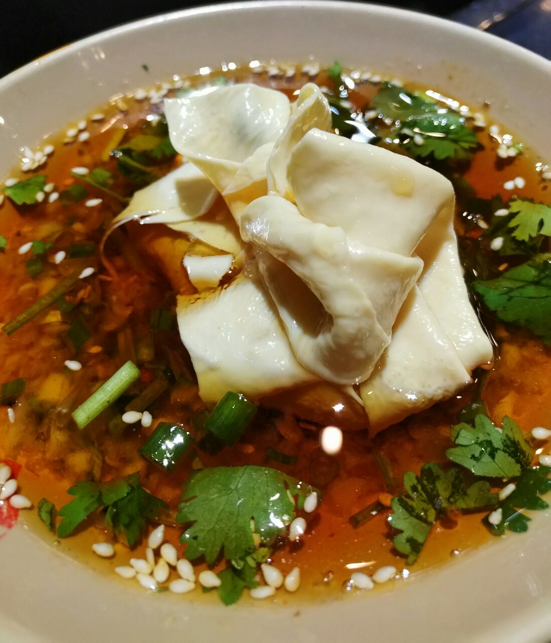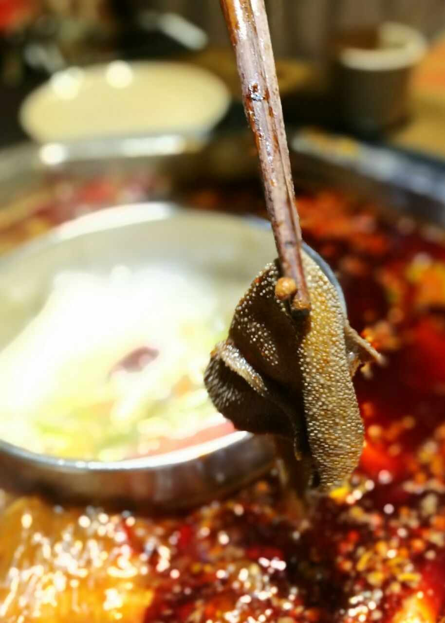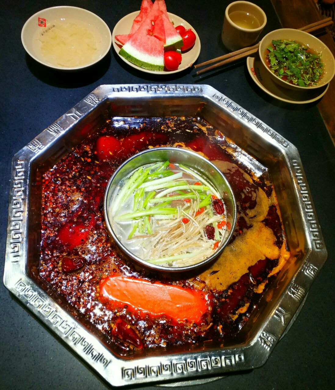 点的三鲜鸳鸯锅,红汤色泽艳丽,口味偏咸,辣味适度;清汤鲜美,涮烫时蔬特别可口。鲜毛肚、鲜鸭肠又嫩又脆。麻辣牛肉很劲爆,入口化渣,超辣,一片牛肉拌了半碗米饭。鲜鸭血非常鲜嫩,老豆腐柔韧、绵实。秦妈家的泡菜颜值高,香脆,微甜。店面大小适中,装饰温馨,收纳包和衣物的趴趴熊藤框非常可爱。服务热情,上菜快速,除自助油碟外,还有水果、银耳汤、米玉羹等可自助选取,结账方式也灵活多样。