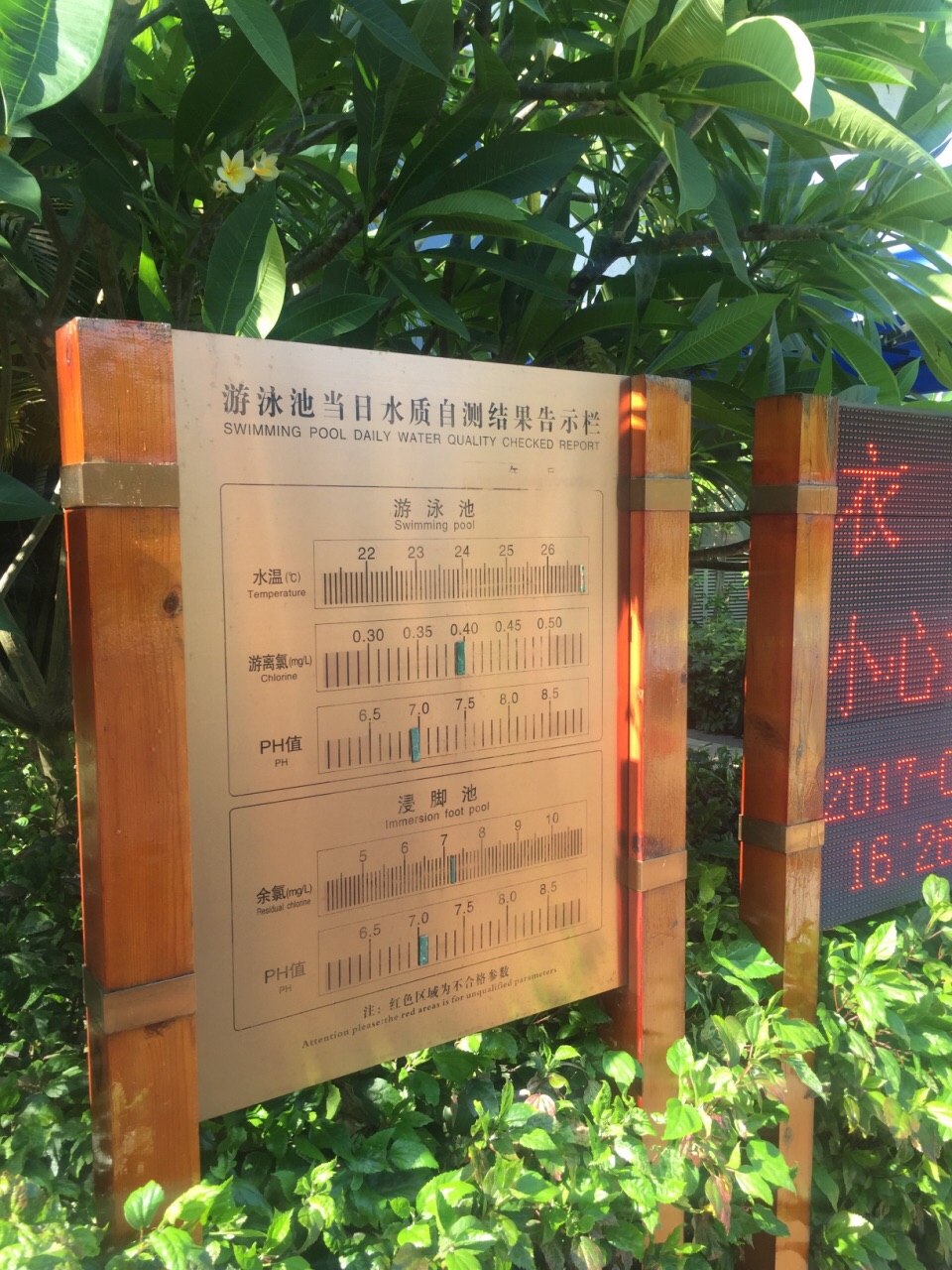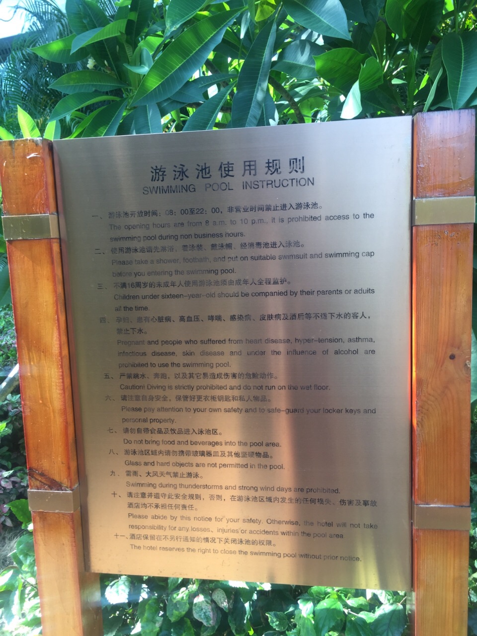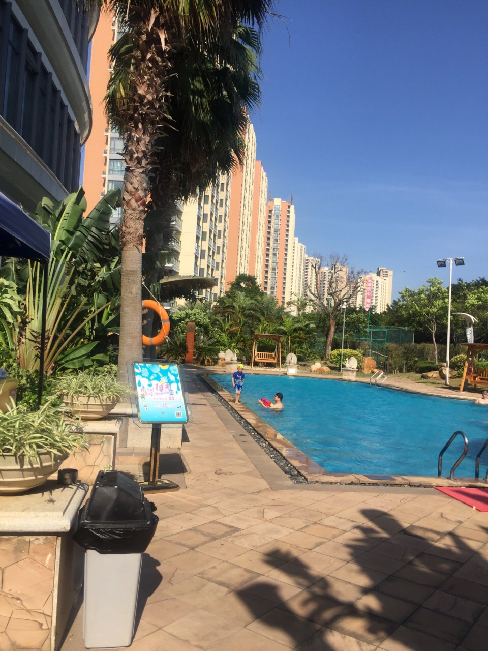 这个游泳池在金昌开元名都大酒店的一楼室外。 酒店内有室外泳池、健身房等可以免费使用。 泳池需要戴泳帽,当然如果没有准备可以在现场购买,价位在三十左右。 当然也可以去侨港那边购买。 但是可以购买泳帽的商家很少,价位在十元以上。 我是第二天上午吃完早餐后去的泳池,大概十一点到十二点,基本上没有什么人。半包场。
