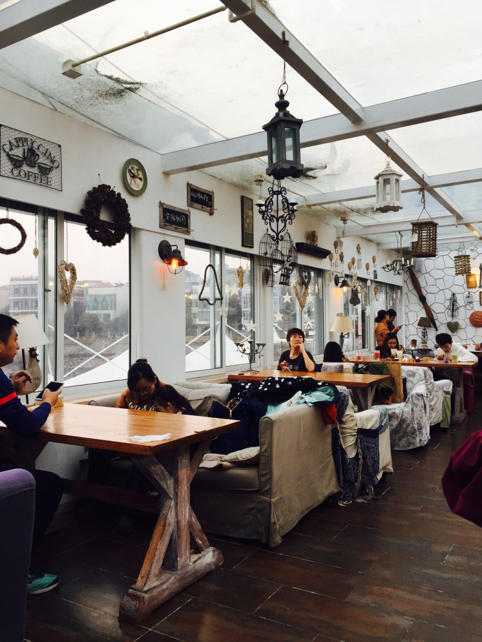 这家店也是朋友带着来的,因为朋友喜欢狗狗,而这家点正好有一只叫木木的狗狗。 【位置】银海大世界内,一个羽毛球学校的隔壁,藏得比较深。 【环境】靠着海的的,环境不错分为吸烟区和非吸烟区,可以坐在窗边看看风景,装修也挺好看的,但是不爱狗的小伙伴慎入,因为狗有时候不会栓起来,会到处溜达,狗毛毛什么的自然也少不了。 【口味】#百香果苏打#基本每次来都点这个,基本不会出错,朋友有时点的别的不怎么好喝。 #蓝莓芝士#挺好吃的一款甜品!赞赞的,奶味比较浓。 #果盘#闲暇的时候点一个吃吃喝喝不错,颜值高,水果口味还凑合。 【总评】几款蛋糕和饮品可以尝试,不爱狗的慎入,基本不搞什么活动,性价比一般,看景色不错。