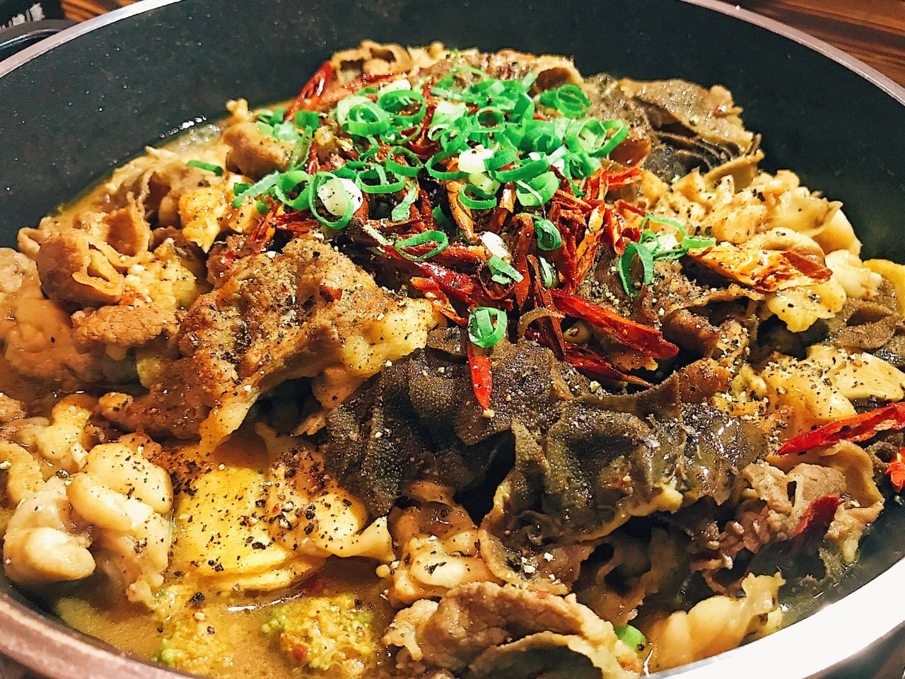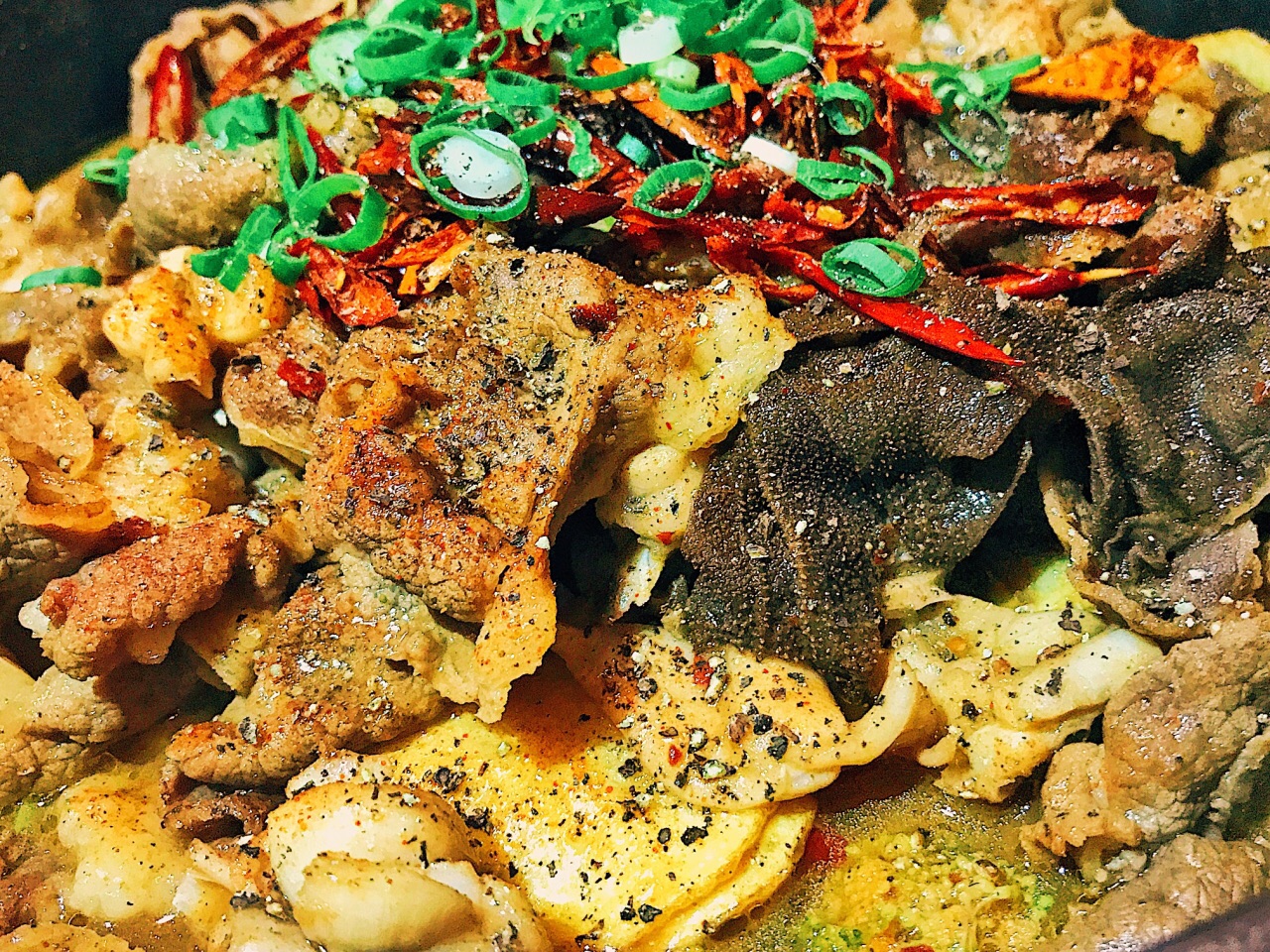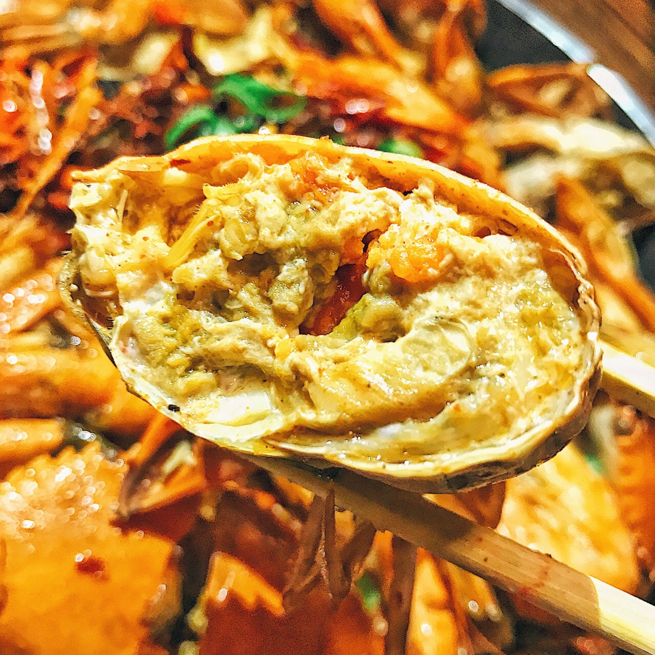感觉微辣和中辣好吃! 肉蟹搭配的明虾和百叶、再加一些喜欢的菜品. 环境:小店不大!荤素搭配最好