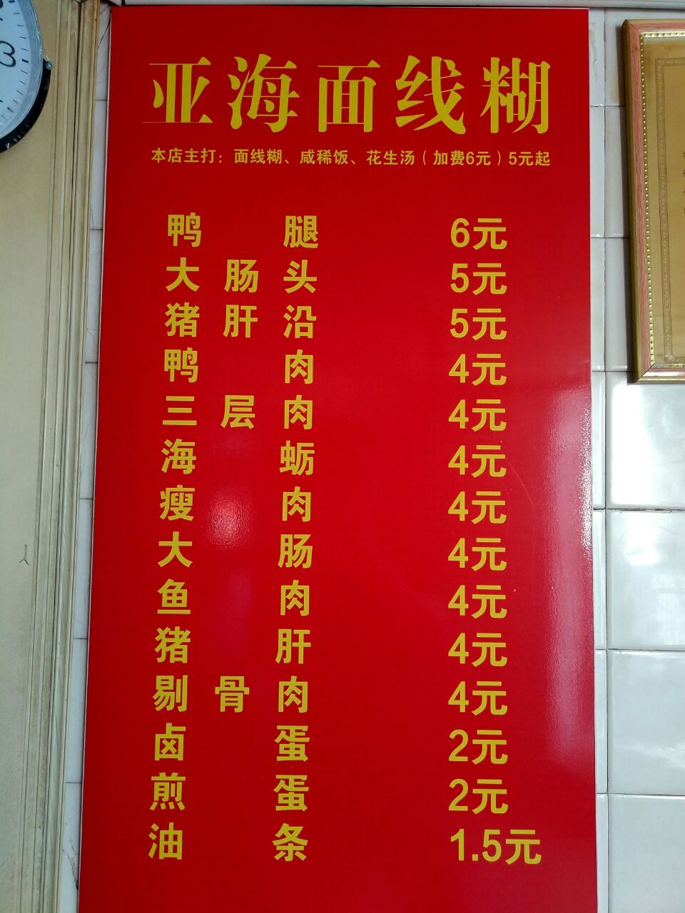 至少三十年以上的小吃店,厦门能开二十年以上,都算得上老字号了。主营面线糊,以至于花生汤都很少有人点单,沦落于保温瓶中,偶尔有人点的时候才倒出来放在电磁炉上加热。厦门的面线糊做法,唯一与大泉州地区面线糊沾边的是喷了少许高粱酒,汤头中有微微酒香。配料首选大肠,他家的大肠有两种,一只是烫熟的,另外一种是卤过的,客人可以根据喜好各取所需。