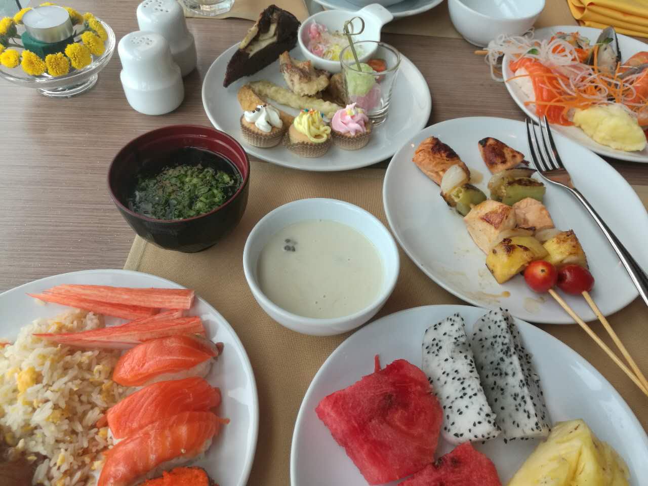 地点很好找,在水门附近,最高楼,看着走过去就行。我是在BIG C走过去的,约15分钟。 环境还可以,周围比较乱,好多深褐色皮肤人,像个贫民区。感觉很不安全。 菜反正什么都有,口味也能接受,但确实不值得那么多钱。不过景色确实不错。 服务不错,菜也量大充足。