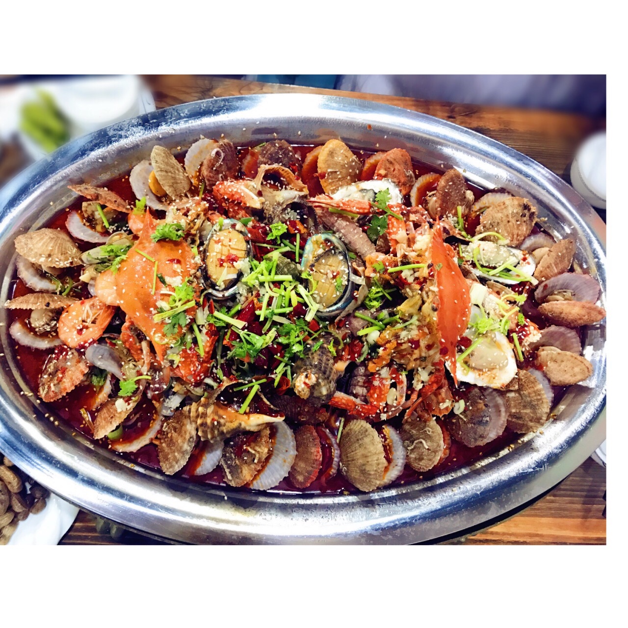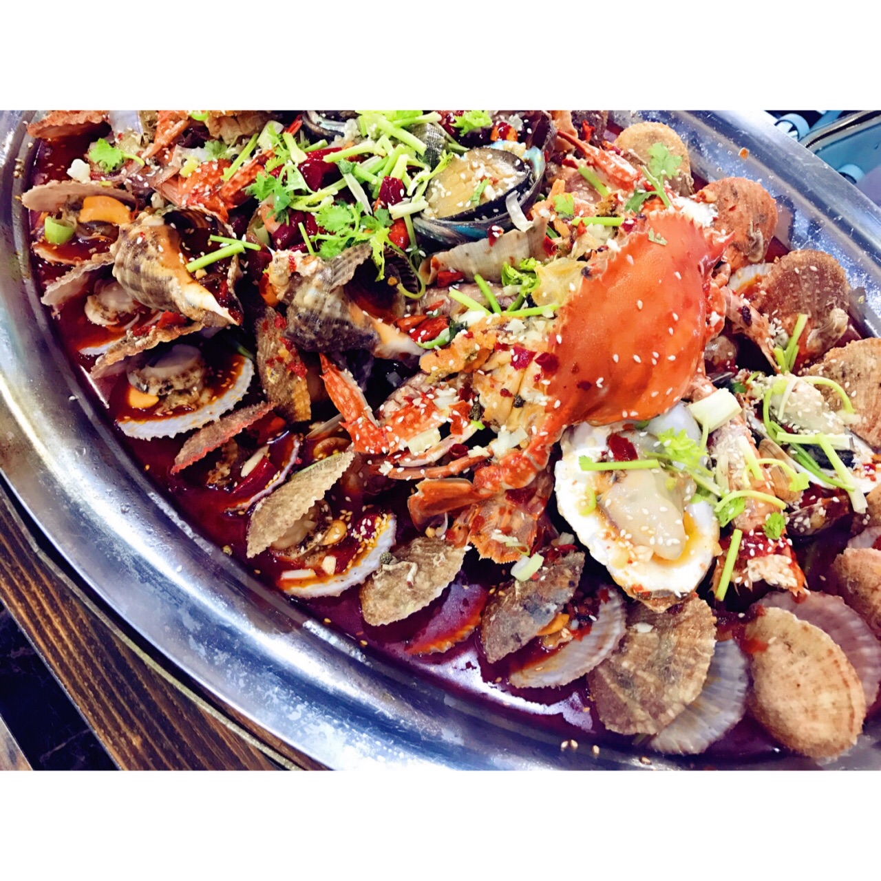2017.7.12 话说常在河边走,哪有不湿鞋… 终于在青岛踩了个雷,怪自己没看仔细, 图片看起来很有食欲是不是?那是假象… 我也是看到图片海鲜大咖蛮赞的, 又是五星好评,和小伙伴一起打车过去, 没有犹豫点了288的锅, 上来是蛮震撼的,很大一锅, 里面品种也蛮多, 扇贝、生蚝、虎虾、蛏子、蛤蜊、蟹等等, 不过每一种都很不新鲜,不!新!鲜! 有的都是沙子,还有臭的,完全凭运气, 蟹的肉质很松,蛏子简直缩到找不到, 图5⃣️是最后吃剩的,还有那么多, 后来仔细看了看点评,好多差评都很中肯, 大家来旅游都是喜欢看点评的, 也希望大家别误导了。 最最讨厌的是小伙伴回来肠胃不舒服了!