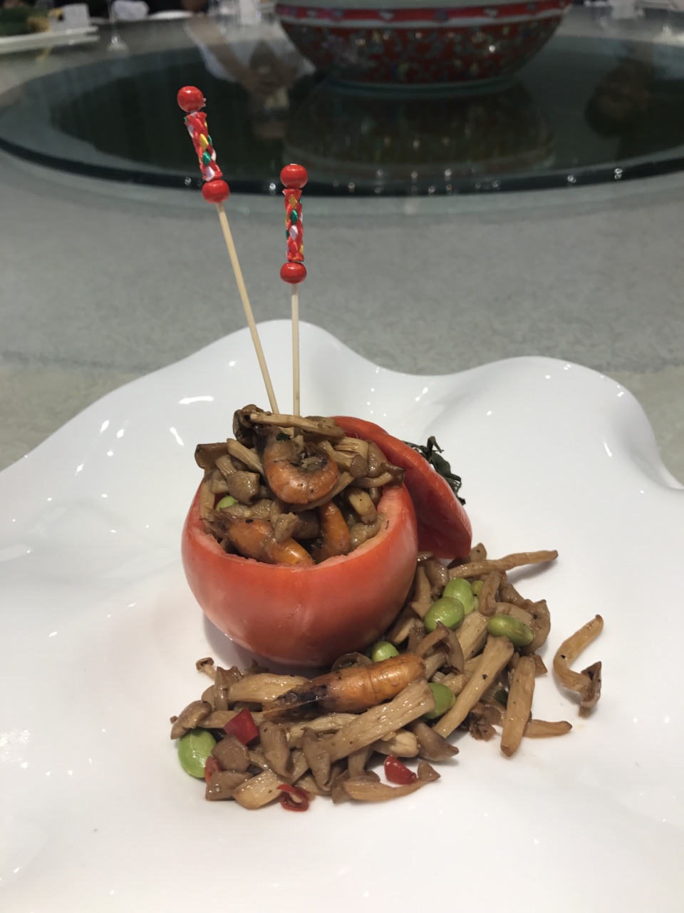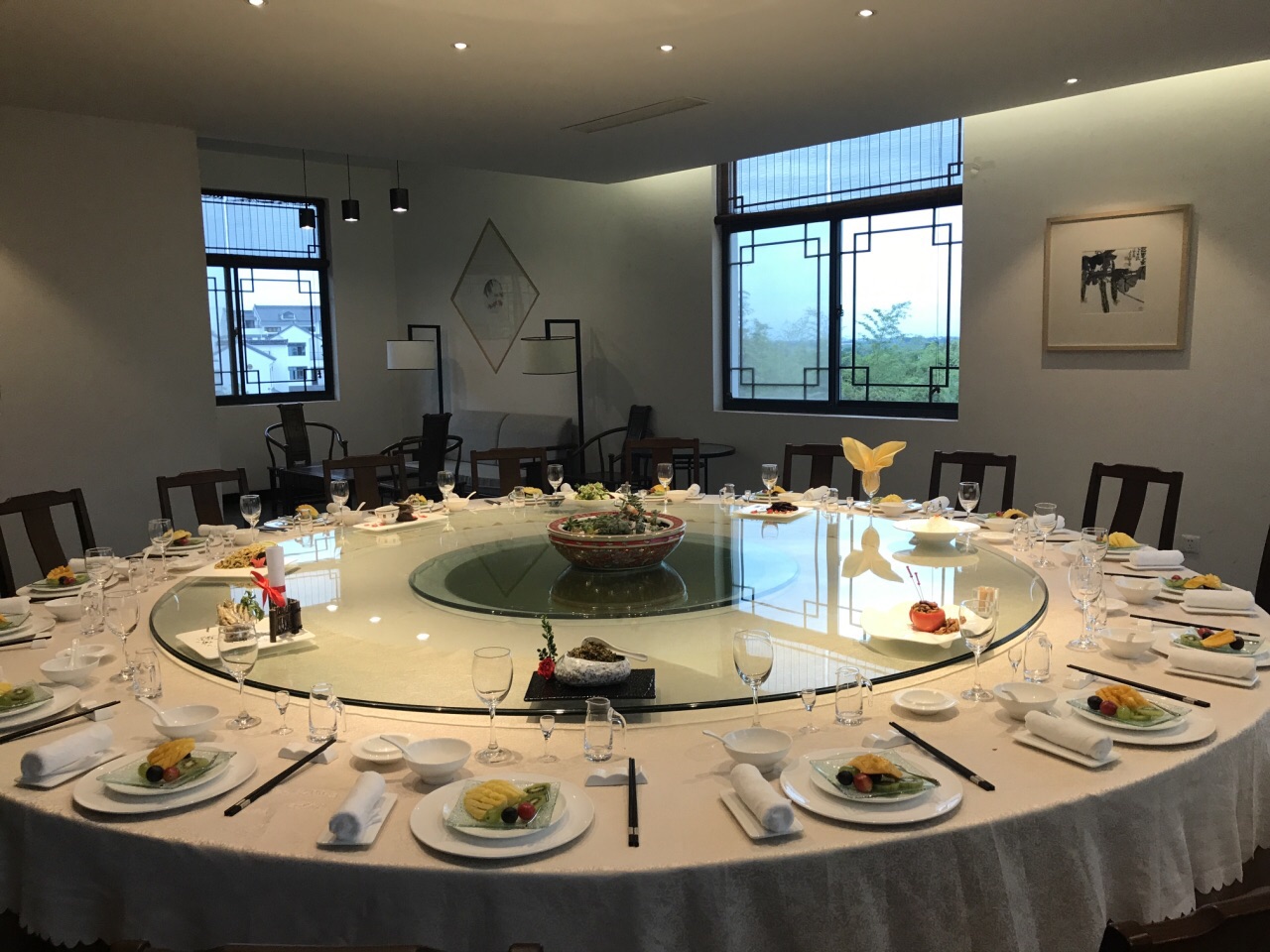 “唯美食与爱不可辜负”,得半庄园的草堂餐厅是中式餐厅,集乡间温情和都市高雅于一体,精致得体。每个厅的名字都很雅致。呈上来的菜肴摆放得非常诗意,每一盘都诉说着一个故事,让我们不忍下筷。餐厅以淳菜为特色,用自产生态时蔬,精致不失口感的菜品搭配吃起来清爽可口。特别是给每人配制的一小碗红烧肉,肉质香酥润口、肥而不腻,心想:苏东坡所食"和草整煮透心香"的东坡肉也不过如此吧。此味只应天上有,人间哪得几回闻",真正是舌尖上的庄园!